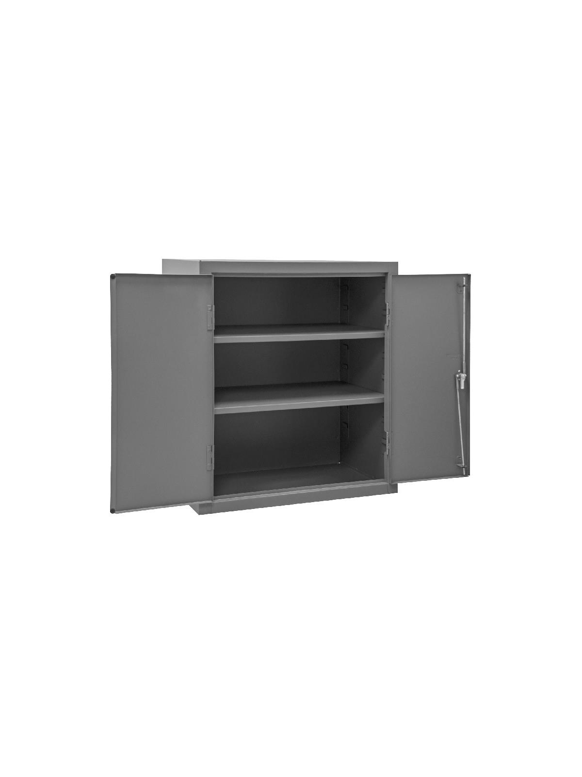 Industrial duty, all welded 16-gauge steel with 3-point locking system with keyed handle and lock rods, 4 keys included. Adjustable shelves rest on louvered panels and adjust on 4" centers. No tools required for installation. H2505 & H2506 models have 6"H base/legs which provide access for forklifts, pre-punched holes allow for lagging to the floor. (Constructed of 3/16" steel) Gray, textured powder coat finish. FOB Shipping Point.