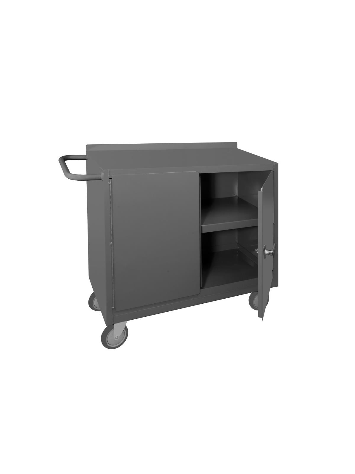 Smooth ball bearing slide drawers are complete with recessed pull handle and cylinder lock. These cabinets deliver top quality without a top price. Easy swing doors on full piano hinge and single point locking handles. Drawers measure 20-7/16"W x 14-11/16"D x 5-7/8"H. Rolls on 5" polyurethane casters (2 rigid, 2 swivel). Complete with push handle. HEMC models have 3"H. back stop. Supplied with keyed-alike cylinder locks. Gray powder coat finish. FOB Shipping Point.