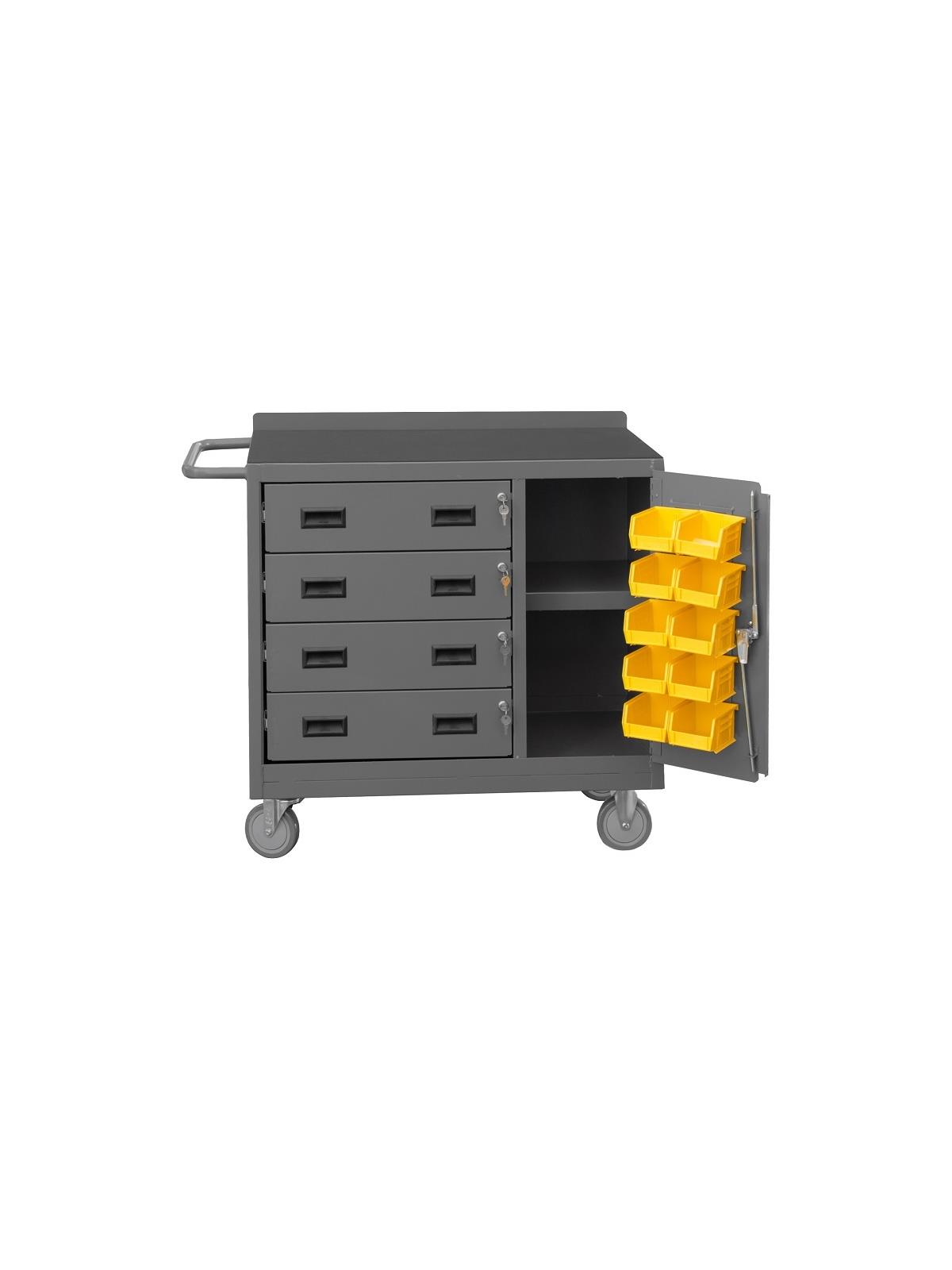 Description Single Door, 4 Hook-On Bins, 2 shelves & 4 drawers
