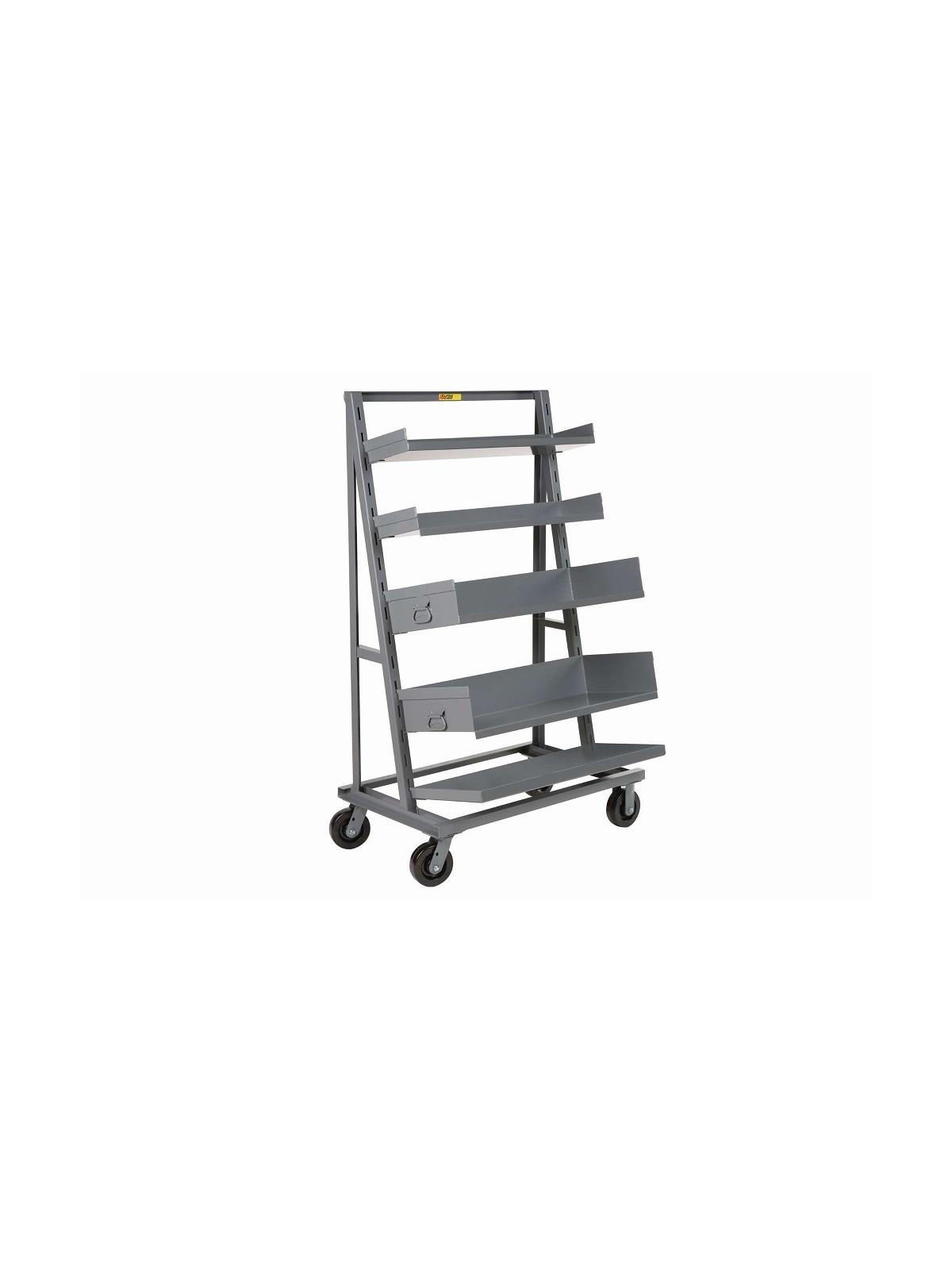 Slotted uprights accept your choice of optional hook-on trays, shelves, or pegboard panels. Rolls smoothly on 6 x 2" phenolic casters, 2 swivel and 2 rigid. Available single or double sided. Optional accessories include Trays, Shelves, and Pegboard Panels. Order truck and accessories separately. FOB Shipping Point.