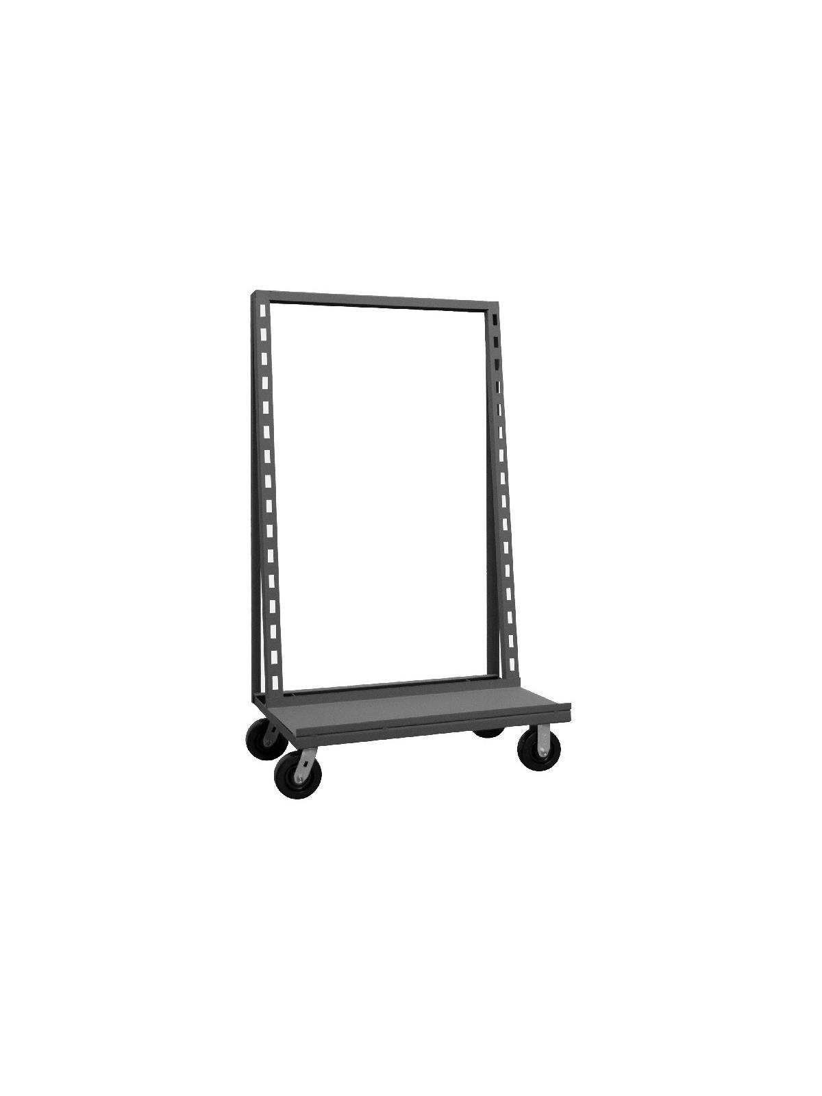 Keep parts, tools, supplies and packages right at the assembly line or work center. Heavy-duty all-steel construction. Base is 1-1/2" x 1/8" angle iron with 11 ga. steel formed upright channels punched on 3-1/2" centers. Easy rolling on bolt on 6" x 2" phenolic casters, 2 rigid, 2 swivel. Finished in durable Gray powder coat finish. Shipped fully assembled and ready for use. FOB Shipping Point.