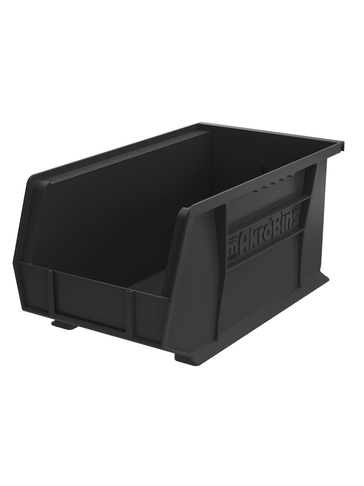 AkroBins are heavy-duty and securely stack on top of each other, sit on shelving, and hang from Akro-Mils racks, panels, rails and carts. Unaffected by weak acids and alkalis the sturdy one piece construction is water, rust and corrosion-proof. Finger grip allows for easy handling. Large label slot for easy identification of contents. Autoclavable up to 250° F. Guaranteed not to crack or break under normal load conditions as stated in the 1-year limited warranty. ESD Bins dissipate electrostatic charges which can severely damage sensitive electronic components. FOB Shipping Point.