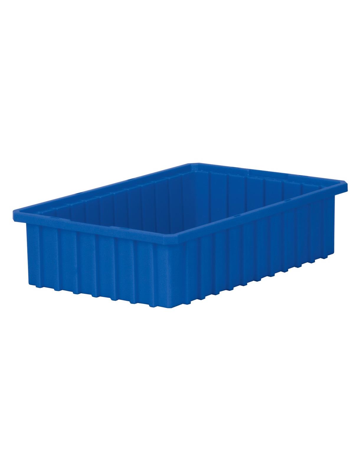 Intersecting dividers allow the container to be subdivided in separate compartments as small as 1-1/8" sq. Injection-molded from high density polyethylene -- resists most solvents and chemicals. Compatible with most racks, shelving and automated material handling equipment. Available in Red, Blue, or Gray. Dividers and lids sold separately. FOB Shipping Point.