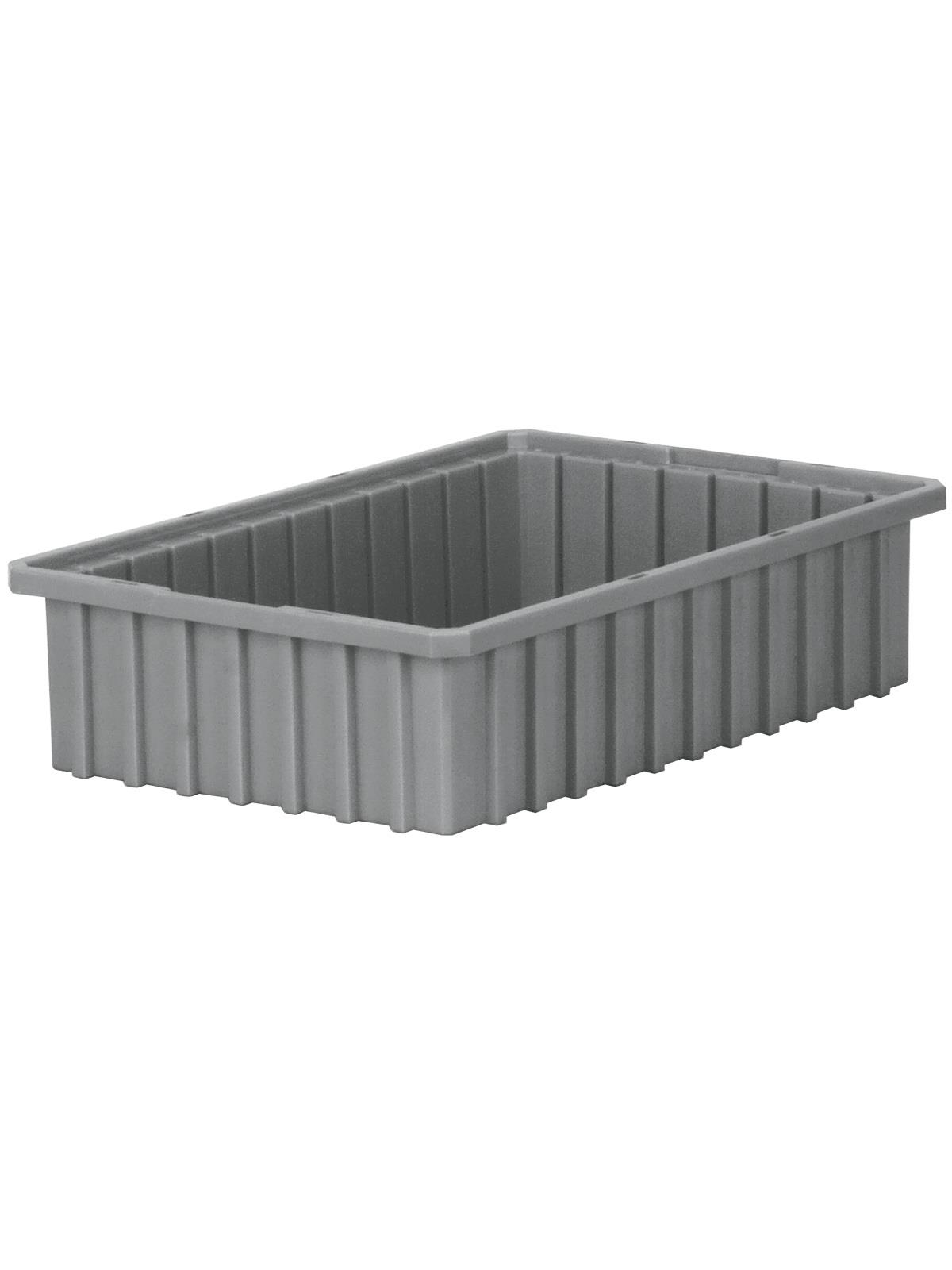 Intersecting dividers allow the container to be subdivided in separate compartments as small as 1-1/8" sq. Injection-molded from high density polyethylene -- resists most solvents and chemicals. Compatible with most racks, shelving and automated material handling equipment. Available in Red, Blue, or Gray. Dividers and lids sold separately. FOB Shipping Point.