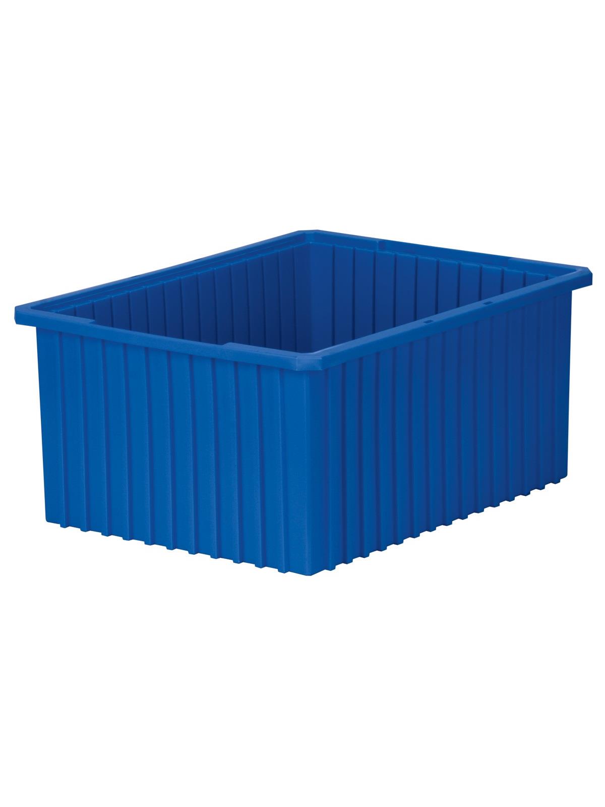 Intersecting dividers allow the container to be subdivided in separate compartments as small as 1-1/8" sq. Injection-molded from high density polyethylene -- resists most solvents and chemicals. Compatible with most racks, shelving and automated material handling equipment. Available in Red, Blue, or Gray. Dividers and lids sold separately. FOB Shipping Point.