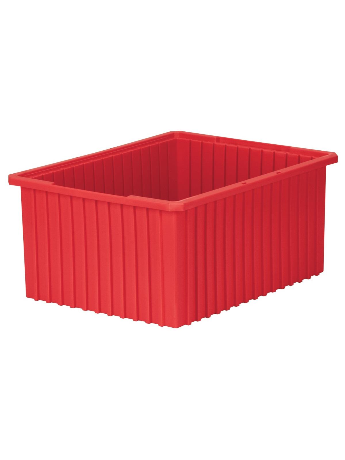 Intersecting dividers allow the container to be subdivided in separate compartments as small as 1-1/8" sq. Injection-molded from high density polyethylene -- resists most solvents and chemicals. Compatible with most racks, shelving and automated material handling equipment. Available in Red, Blue, or Gray. Dividers and lids sold separately. FOB Shipping Point.