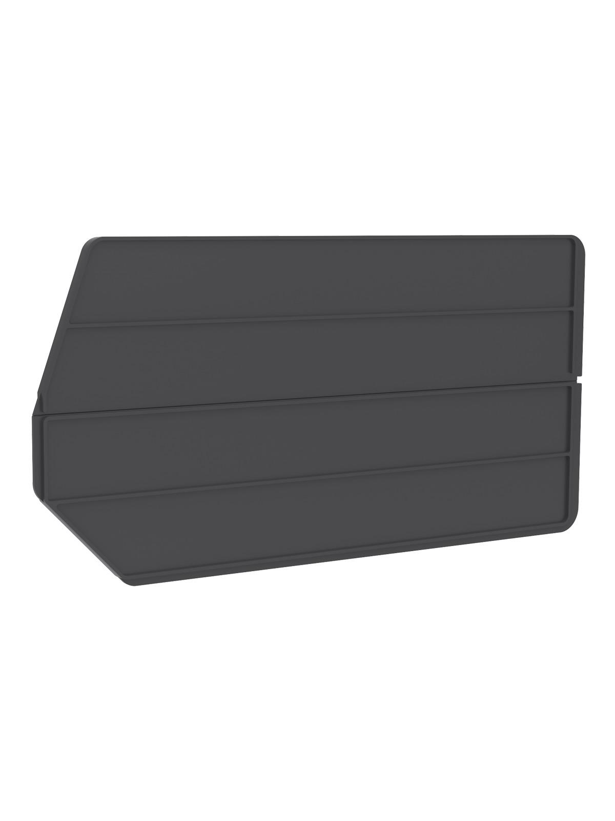 Dividers slip into grooves on the inside of the bins (sold separately). Lengthwise dividers keep items separated in the bin and are available in black. Cross dividers divide bins widthwise and are black. FOB Shipping Point.