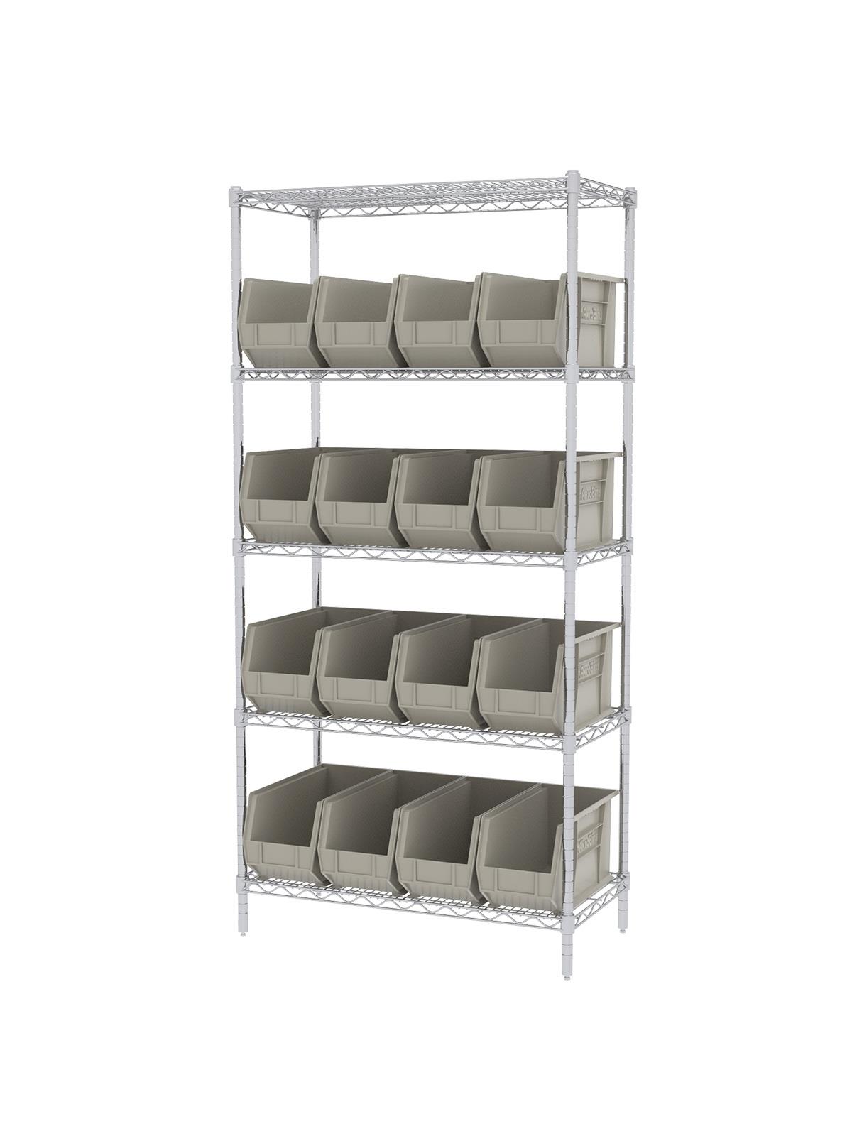A wide variety of shelf configurations are possible with three sizes of shelving available. Durable AkroBins® feature a curved bottom hopper front, to enable easy access of small parts. Bins available in Blue, Red, Yellow, Stone, Green, or Semi-Clear. FOB Shipping Point.