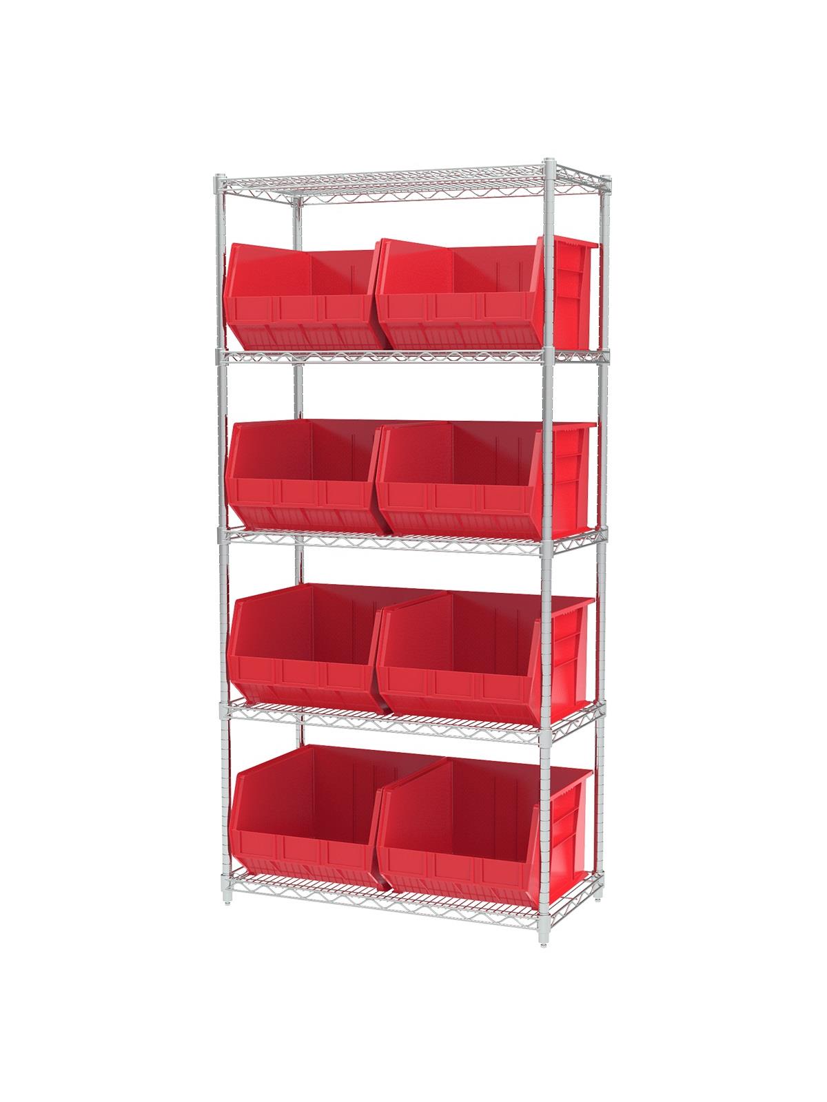 A wide variety of shelf configurations are possible with three sizes of shelving available. Durable AkroBins® feature a curved bottom hopper front, to enable easy access of small parts. Bins available in Blue, Red, Yellow, Stone, Green, or Semi-Clear. FOB Shipping Point.