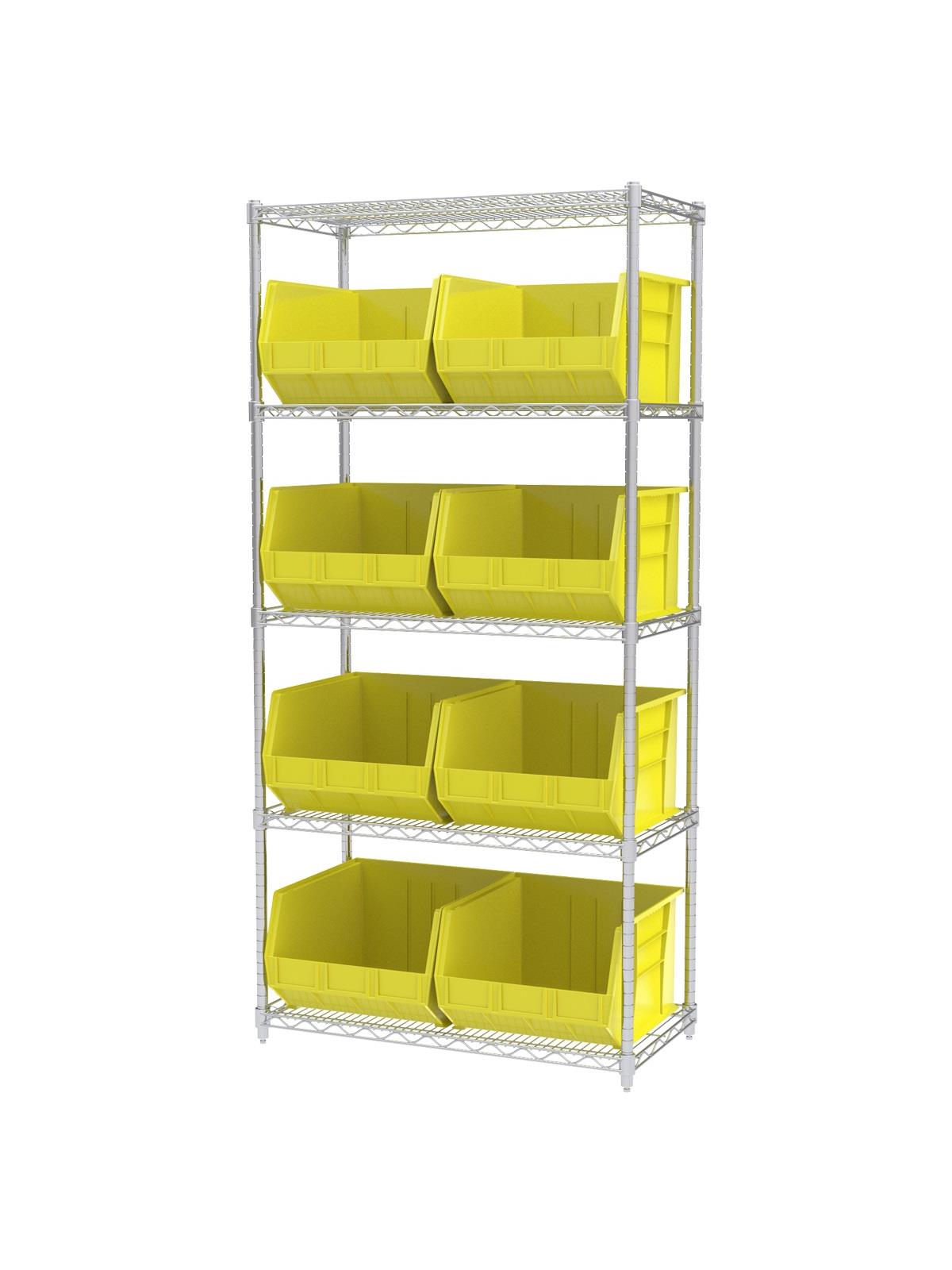 A wide variety of shelf configurations are possible with three sizes of shelving available. Durable AkroBins® feature a curved bottom hopper front, to enable easy access of small parts. Bins available in Blue, Red, Yellow, Stone, Green, or Semi-Clear. FOB Shipping Point.