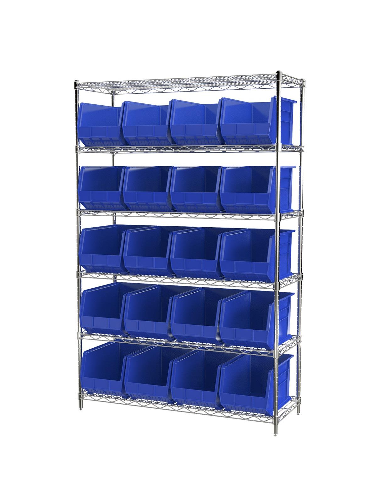 A wide variety of shelf configurations are possible with three sizes of shelving available. Durable AkroBins® feature a curved bottom hopper front, to enable easy access of small parts. Bins available in Blue, Red, Yellow, Stone, Green, or Semi-Clear. FOB Shipping Point.