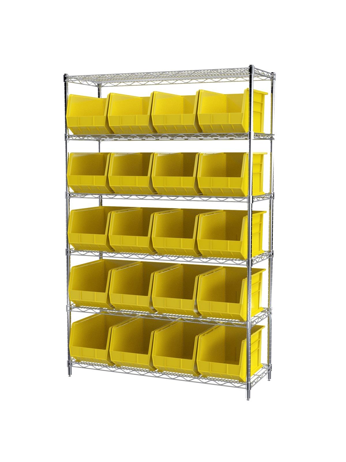 A wide variety of shelf configurations are possible with three sizes of shelving available. Durable AkroBins® feature a curved bottom hopper front, to enable easy access of small parts. Bins available in Blue, Red, Yellow, Stone, Green, or Semi-Clear. FOB Shipping Point.