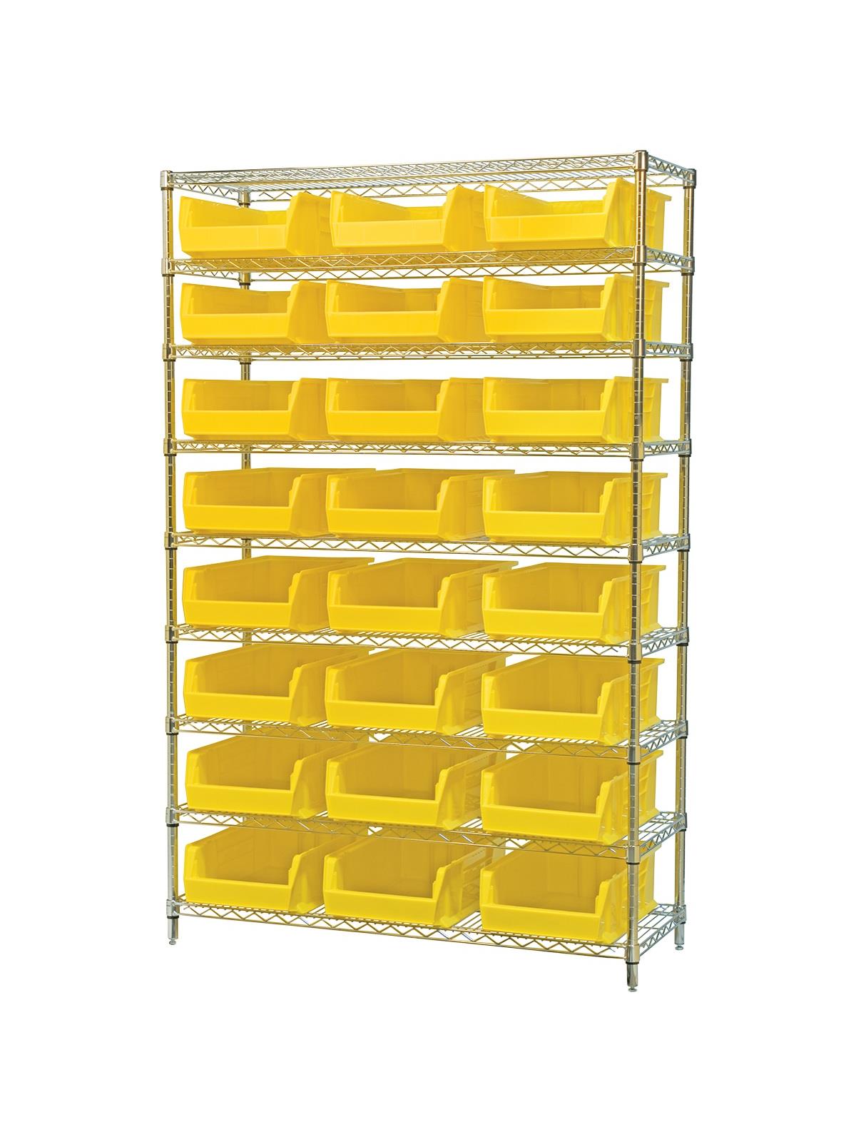A wide variety of shelf configurations are possible with three sizes of shelving available. Durable AkroBins® feature a curved bottom hopper front, to enable easy access of small parts. Bins available in Blue, Red, Yellow, Stone, Green, or Semi-Clear. FOB Shipping Point.