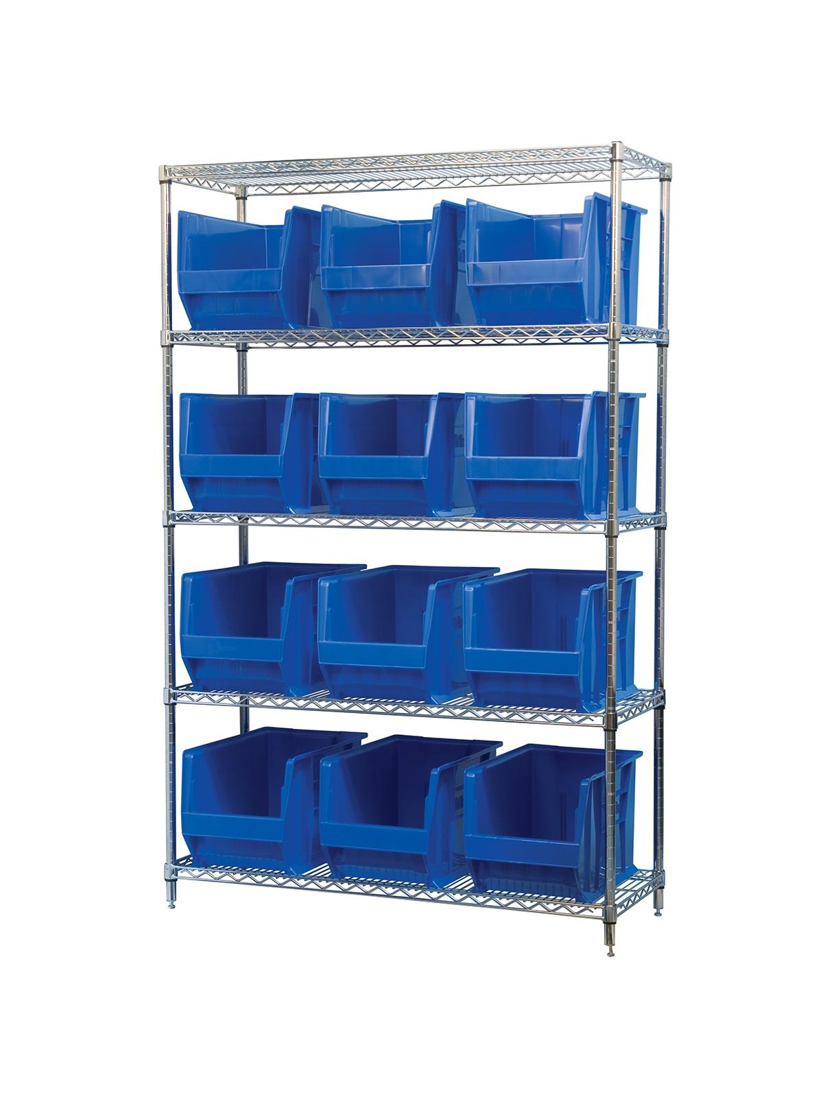 A wide variety of shelf configurations are possible with three sizes of shelving available. Durable AkroBins® feature a curved bottom hopper front, to enable easy access of small parts. Bins available in Blue, Red, Yellow, Stone, Green, or Semi-Clear. FOB Shipping Point.