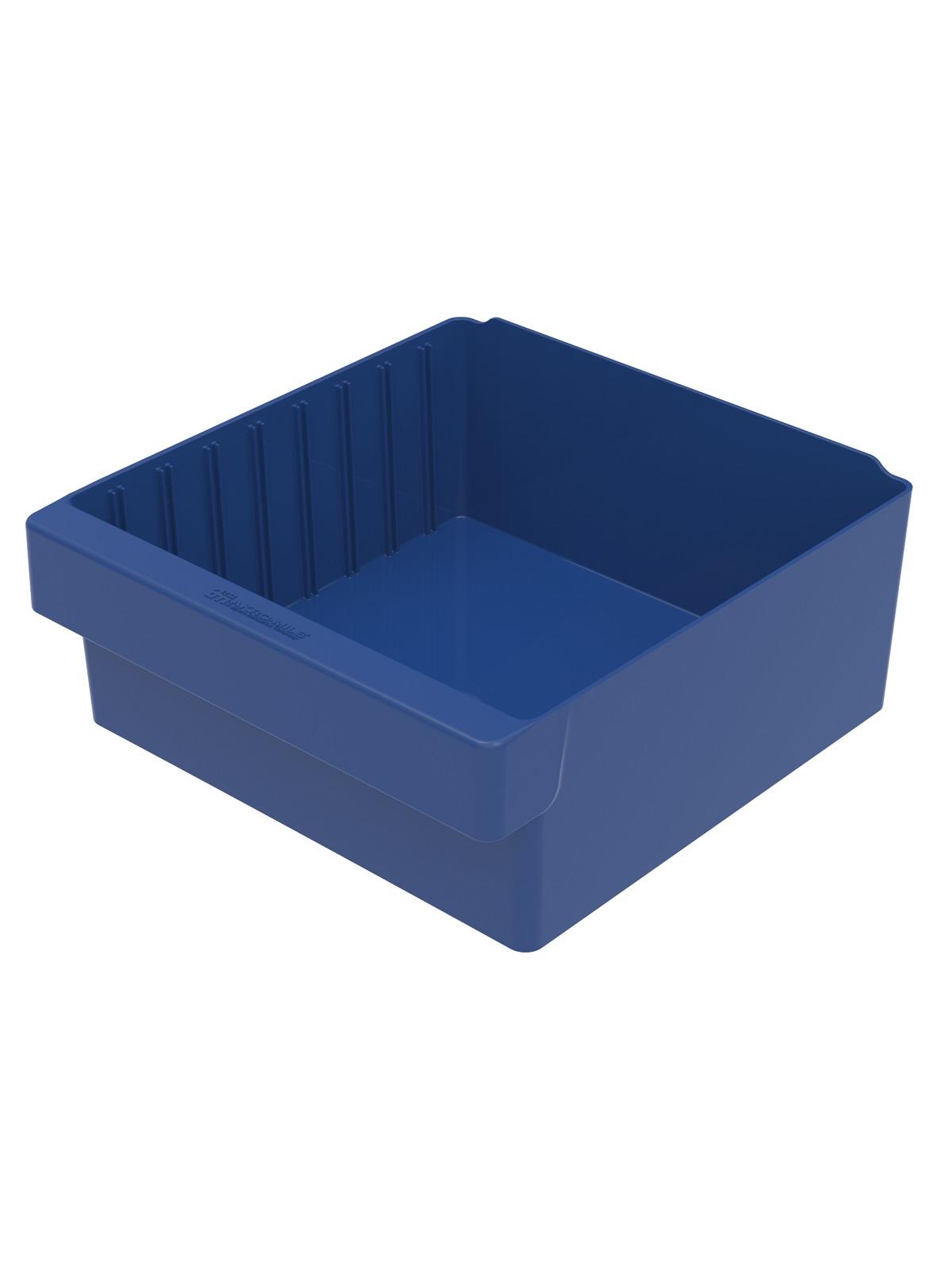 Offered in 12" or 18" depths to work with compatible shelving. Easy to label and color code inventory for quick identification of parts and supplies. Drawers can be stacked to optimize space. Wide front handle for easy gripping when AkroDrawers are loaded or contain heavy contents. Can be used with available shelving, racks, mobile carts or can be used by themselves. Sturdy back stop tab ensures AkroDrawers can hang securely from shelves. Dividers are available to keep contents neatly separated in drawers. Available in Blue, Gray, Yellow, Red and Clear - Minimum order required. FOB Shipping Point.