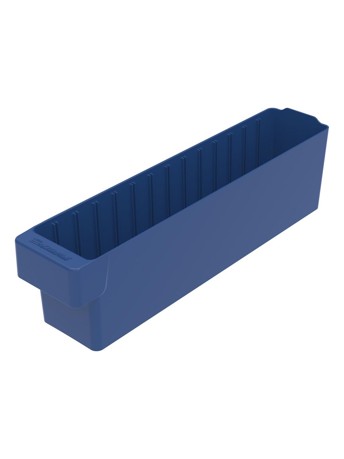 Offered in 12" or 18" depths to work with compatible shelving. Easy to label and color code inventory for quick identification of parts and supplies. Drawers can be stacked to optimize space. Wide front handle for easy gripping when AkroDrawers are loaded or contain heavy contents. Can be used with available shelving, racks, mobile carts or can be used by themselves. Sturdy back stop tab ensures AkroDrawers can hang securely from shelves. Dividers are available to keep contents neatly separated in drawers. Available in Blue, Gray, Yellow, Red and Clear - Minimum order required. FOB Shipping Point.