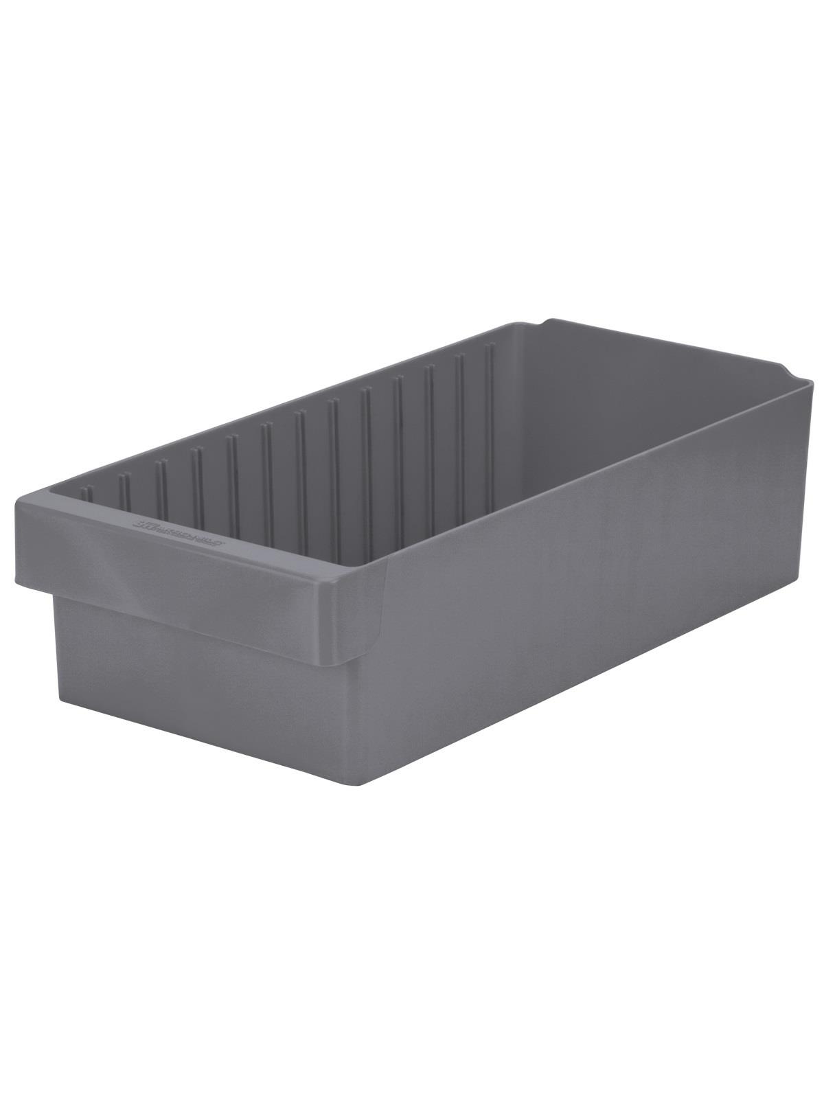 Offered in 12" or 18" depths to work with compatible shelving. Easy to label and color code inventory for quick identification of parts and supplies. Drawers can be stacked to optimize space. Wide front handle for easy gripping when AkroDrawers are loaded or contain heavy contents. Can be used with available shelving, racks, mobile carts or can be used by themselves. Sturdy back stop tab ensures AkroDrawers can hang securely from shelves. Dividers are available to keep contents neatly separated in drawers. Available in Blue, Gray, Yellow, Red and Clear - Minimum order required. FOB Shipping Point.