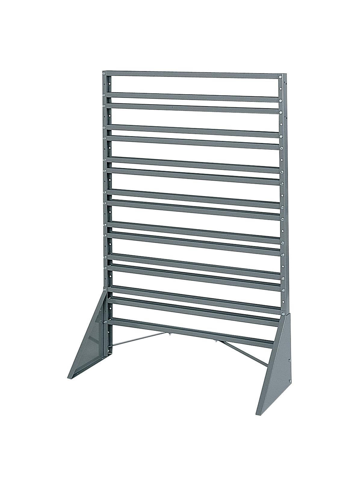 Panels are available in 18" x 36" widths. Two louvered racks available. Two bench racks available that support 120 lbs. Free standing floor rack supports 2000 lbs. Ships by truck. FOB Shipping Point.