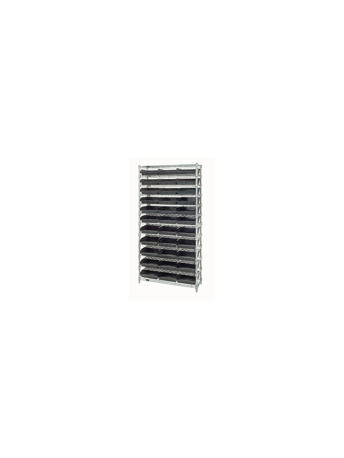 Combine stylish chrome shelving and parts organizing bins. Sturdy shelving unit supports loads up to 800 lbs. Choice of bins. Easy to assemble. Shelf Bins are available in Blue, Red, Yellow, Green, Ivory or Black.  FOB Shipping Point.