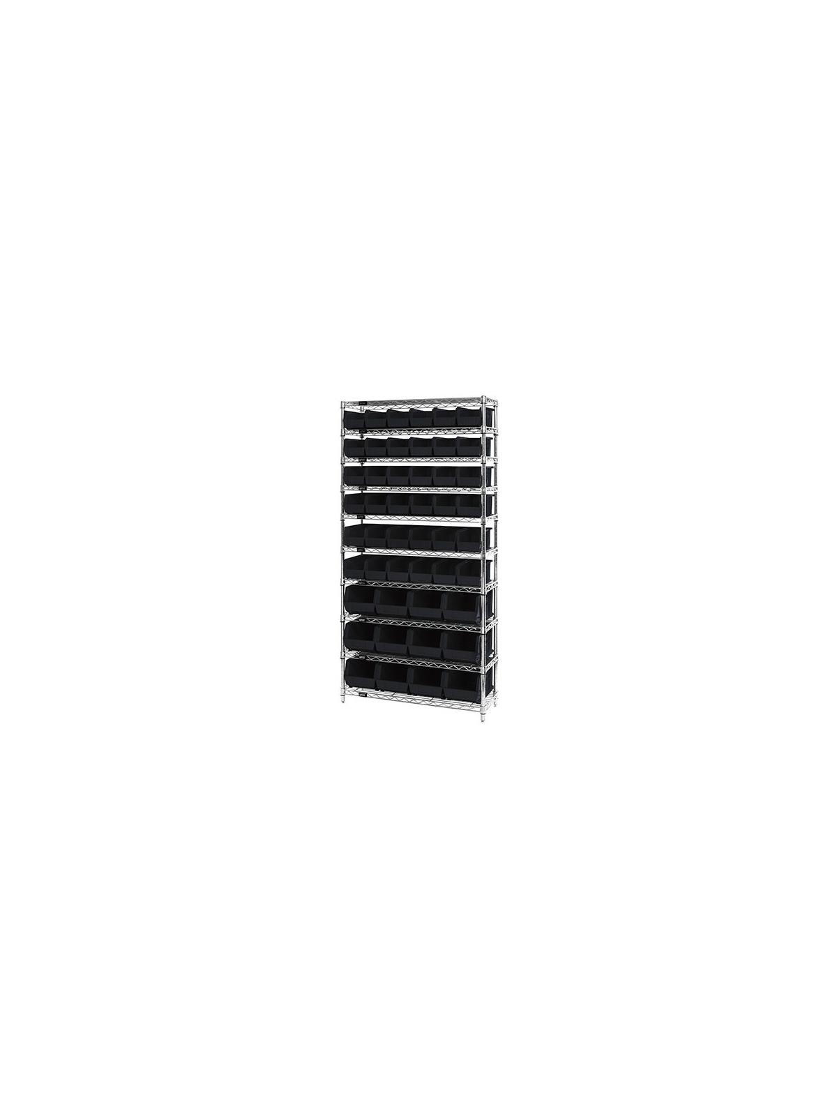 Combine stylish chrome shelving and parts organizing bins. Sturdy shelving unit supports loads up to 800 lbs. Choice of bins. Easy to assemble. Ultra Bins are available in Blue, Red, Yellow, Green, Ivory or Black. FOB Shipping Point.