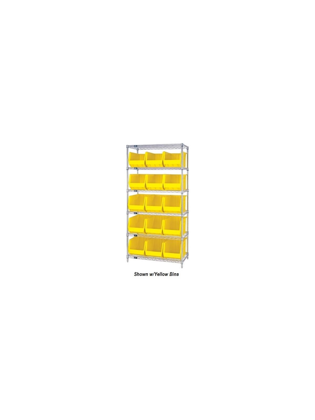 Combine stylish chrome shelving and parts organizing bins. Sturdy shelving unit supports loads up to 800 lbs. Choice of bins. Easy to assemble. Ultra Bins are available in Blue, Red, Yellow, Green, Ivory or Black. FOB Shipping Point.
