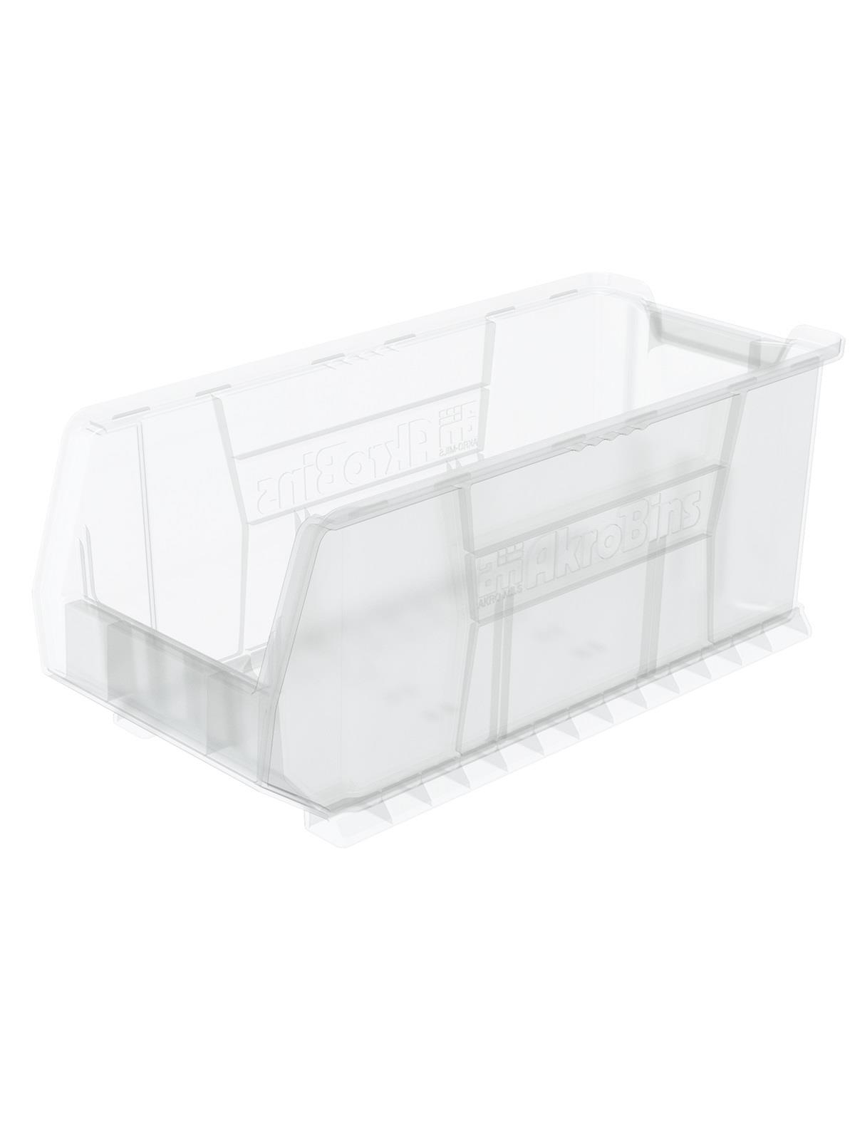 20", 24" and 30" Deep Clear Bins for Super-Size Storage. Large capacity storage bins for organizing heavy or bulky items. Heavy-duty bins molded in clear polypropylene. Extra large stacking containers feature anti-slide stop to prevent bins from shifting forward. Reinforced side ribs add strength and prevent spreading when stacked or loaded. Optional lids and dividers available. FOB Shipping Point.