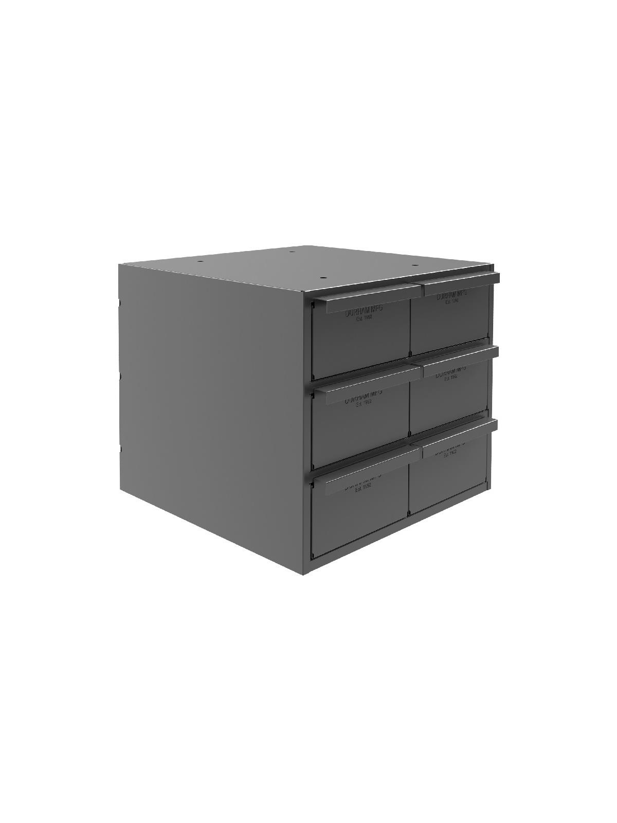 All-welded heavy-duty frame features vertical support for extra stacking strength. A positive stop mechanism prevents drawers from falling out. Drawers also feature double interlocked design for additional rigidity. Full-width handles for a firm grip. Each drawer complete with 2 adjustable dividers. Extra dividers sold below. Fits standard shelving. Finished in rust and acid resistant Gray powder coat. Fully assembled. FOB Shipping Point.