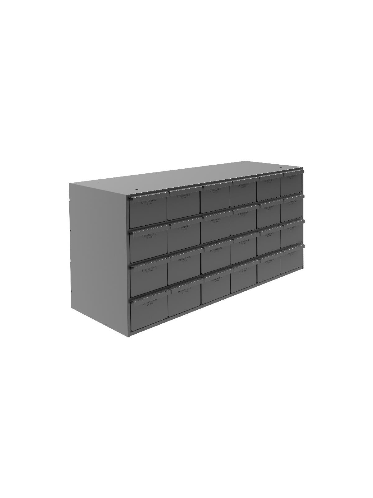All-welded heavy-duty frame features vertical support for extra stacking strength. A positive stop mechanism prevents drawers from falling out. Drawers also feature double interlocked design for additional rigidity. Full-width handles for a firm grip. Each drawer complete with 2 adjustable dividers. Extra dividers sold below. Fits standard shelving. Finished in rust and acid resistant Gray powder coat. Fully assembled. FOB Shipping Point.