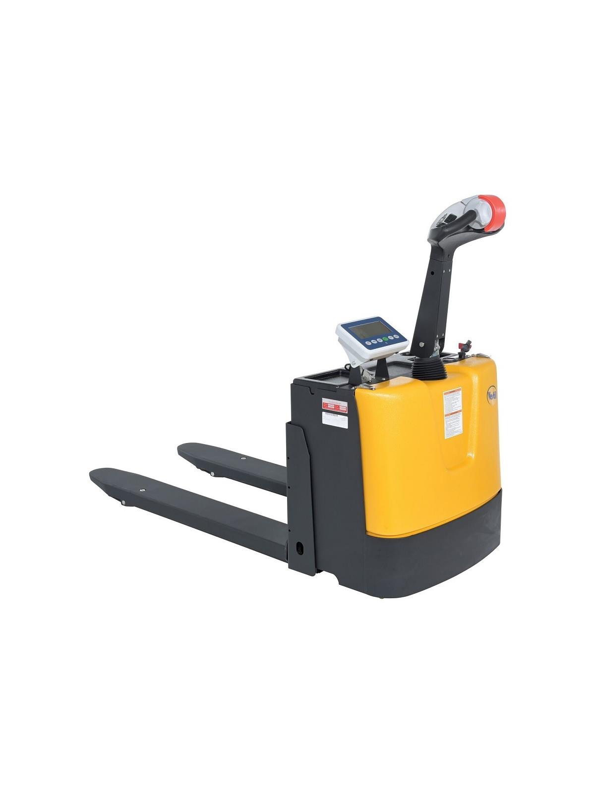 Verify inbound and outbound freight right on your pallet truck and then move your loads with ease. LCD Scale with 1/2" high characters and 5 function keys (ZERO, TARE, NET/GROSS, PRINT, LB./KG.). Displays weight in 1 lb. increments within trucks rated capacity. Scale display operates on (6) AA batteries. Raise and lower loads with a push of a button. FOB Shipping Point.