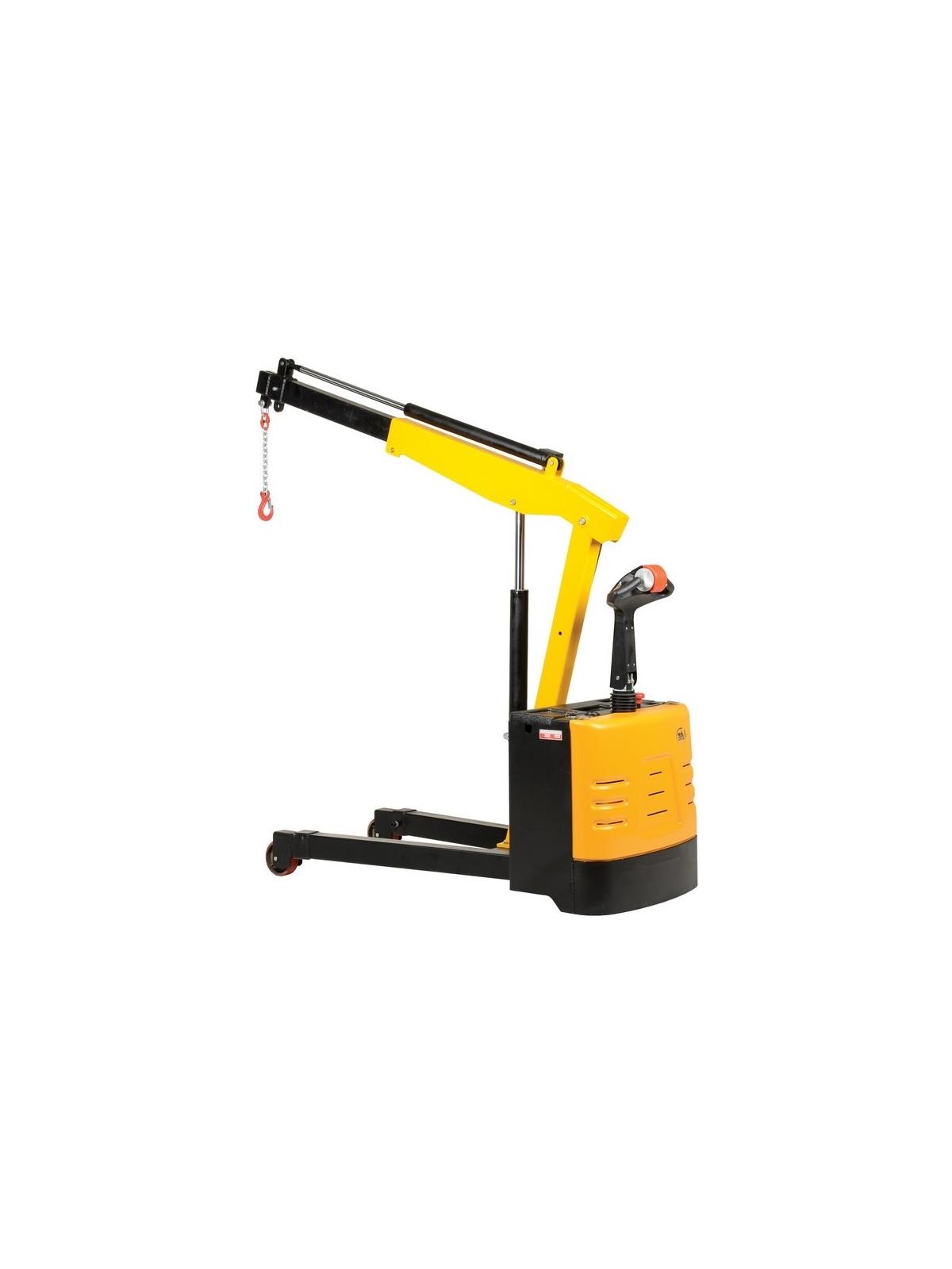 Fully powered shop cranes (power hoist & power in/out boom) for moving loads quickly, easily, and safely. 24V DC drive and lift motor handles heavy-duty jobs. Ergonomic handle features easy-to-operate throttle with infinite adjustment of forward and reverse speeds, lift/lower controls, proprietary safety-enhancing emergency reverse function, and horn. Includes an electromagnetic disc brake with automatic dead-man feature that activates when user releases the handle. Powered shop crane has two (2) 12V batteries, integral battery charger, and battery level gauge. Poly-on-steel steer and load wheels. 3-4 hour operation at full charge -8 hours when used intermittently. Includes rigid hook with safety latch. FOB Shipping Point.