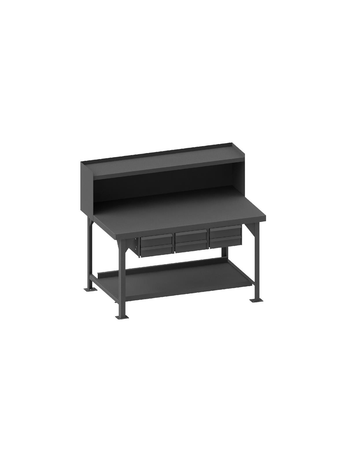 Products with top shelf risers used as shelf and back splash. See Related Items tab for Drawer for Durham Work Benches.