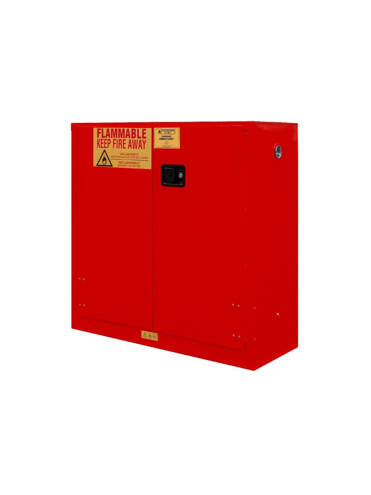 Flammable Storage Cabinets are required by OSHA and UFC in commercial and industrial facilities where flammable liquids are used and stored. Cabinets feature recessed lockable paddle latch and 3 point locking systems which greatly improves security. Bunged air vents on each side of the cabinet allows for greater ventilation. Constructed of all welded Heavy Duty Steel.