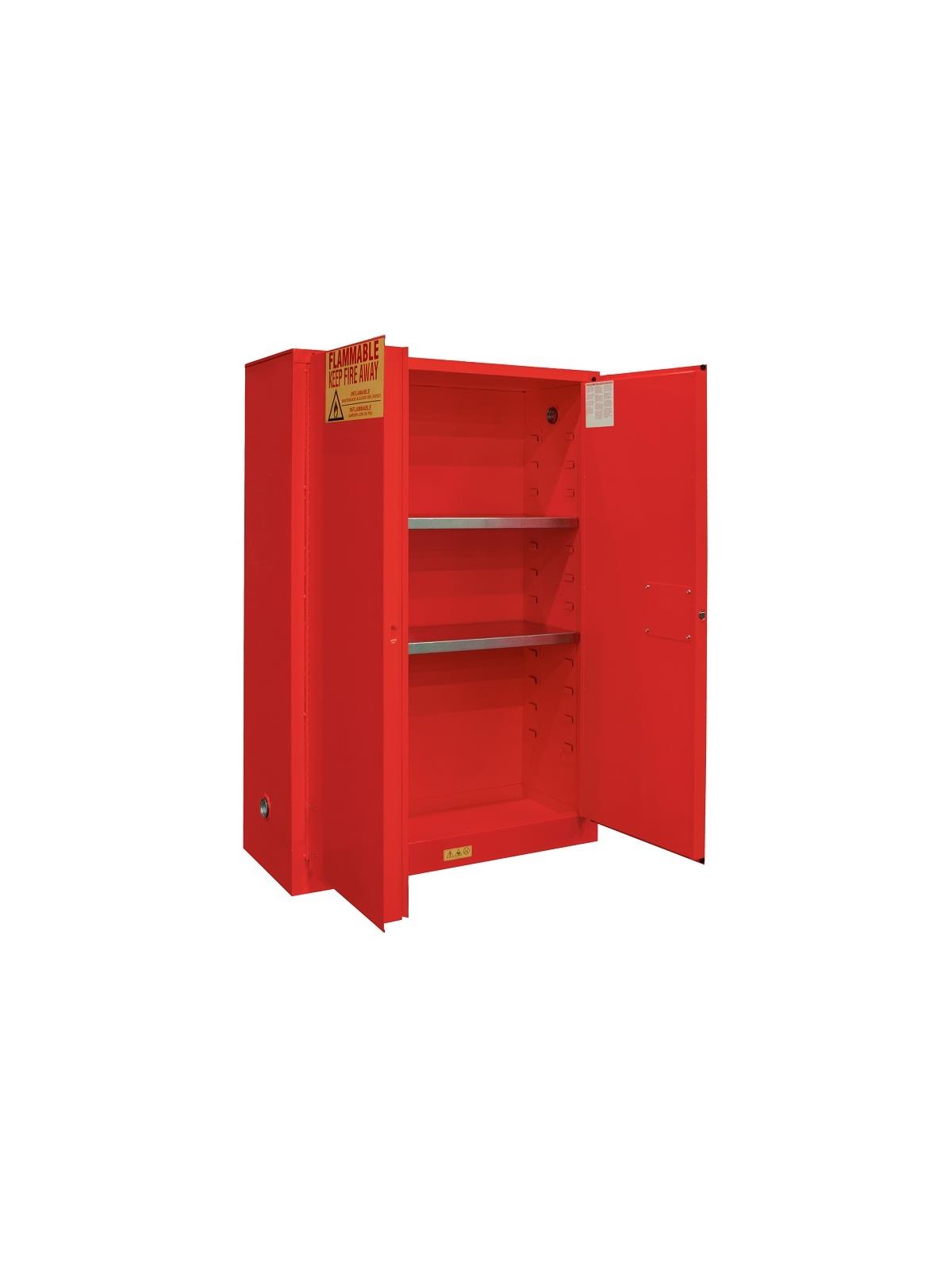 Flammable Storage Cabinets are required by OSHA and UFC in commercial and industrial facilities where flammable liquids are used and stored. Cabinets feature recessed lockable paddle latch and 3 point locking systems which greatly improves security. Bunged air vents on each side of the cabinet allows for greater ventilation. Constructed of all welded Heavy Duty Steel.