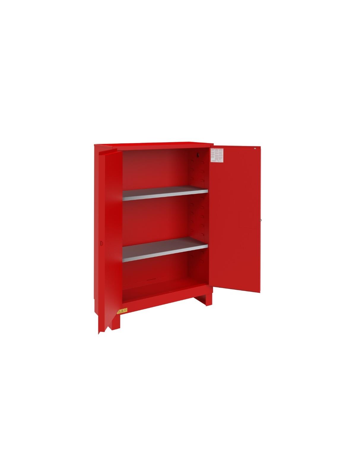 Flammable Storage Cabinets are required by OSHA and UFC in commercial and industrial facilities where flammable liquids are used and stored. Cabinets feature recessed lockable paddle latch and 3 point locking systems which greatly improves security. Bunged air vents on each side of the cabinet allows for greater ventilation. Constructed of all welded Heavy Duty Steel.