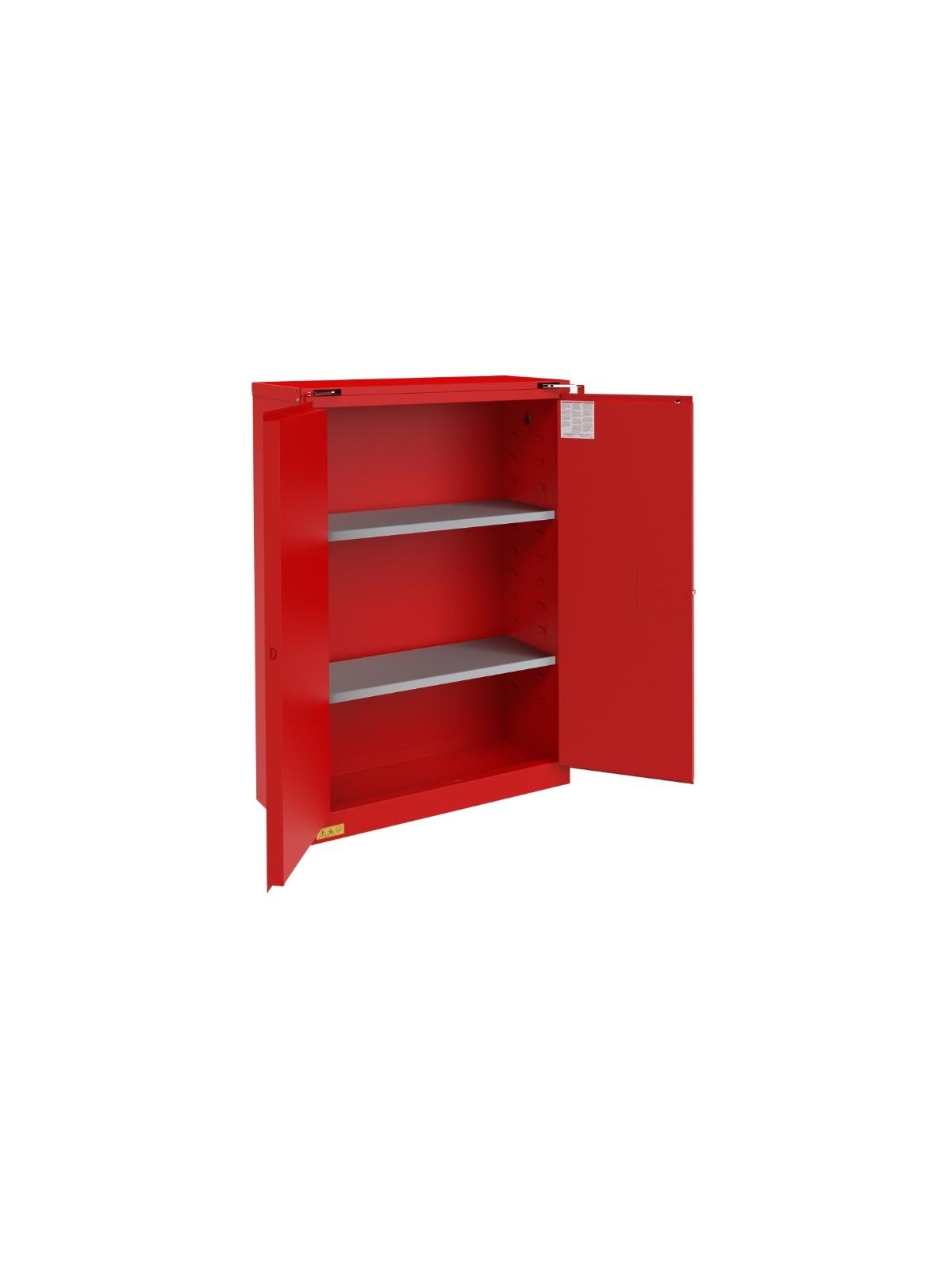 Flammable Storage Cabinets are required by OSHA and UFC in commercial and industrial facilities where flammable liquids are used and stored. Cabinets feature recessed lockable paddle latch and 3 point locking systems which greatly improves security. Bunged air vents on each side of the cabinet allows for greater ventilation. Constructed of all welded Heavy Duty Steel.