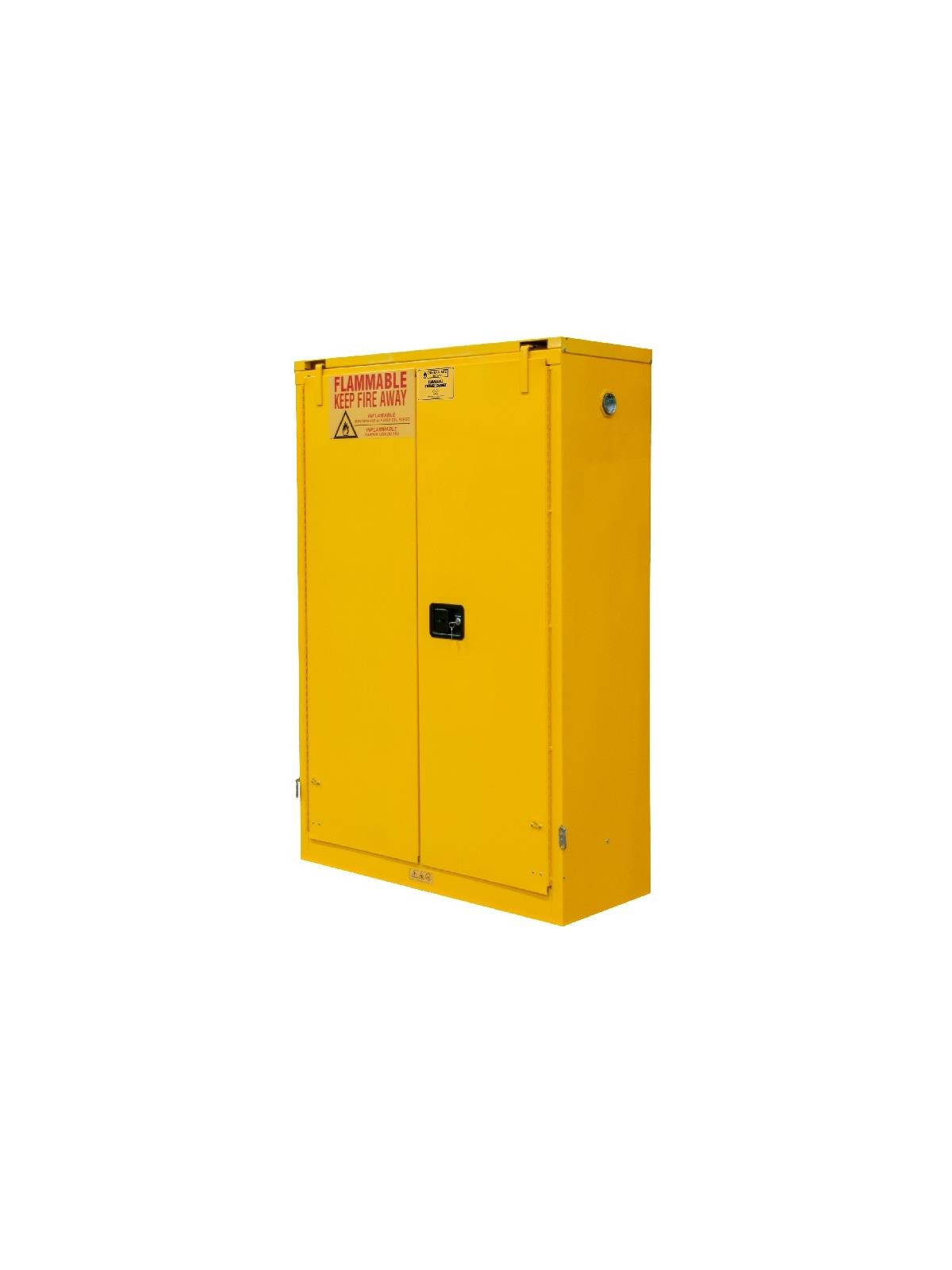 Flammable Storage Cabinets are required by OSHA and UFC in commercial and industrial facilities where flammable liquids are used and stored. Cabinets feature recessed lockable paddle latch and 3 point locking systems which greatly improves security. Bunged air vents on each side of the cabinet allows for greater ventilation. Constructed of all welded Heavy Duty Steel.