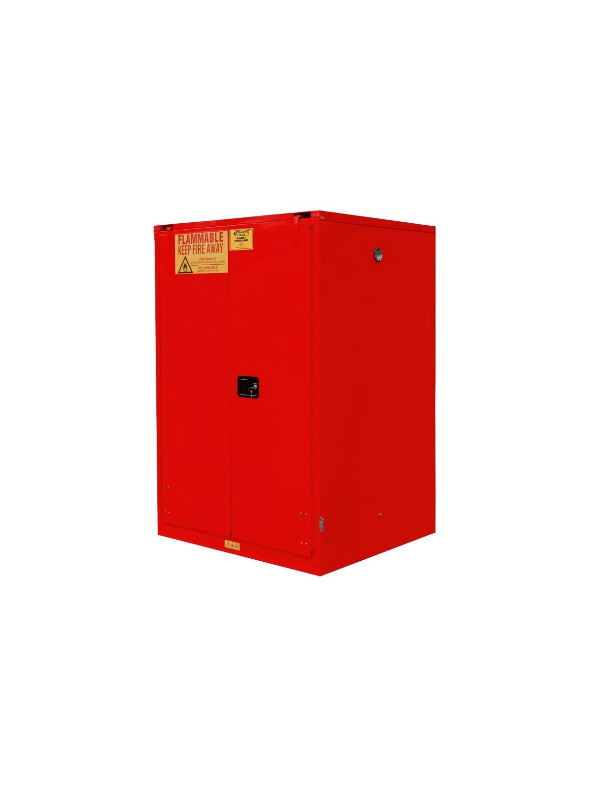 Flammable Storage Cabinets are required by OSHA and UFC in commercial and industrial facilities where flammable liquids are used and stored. Cabinets feature recessed lockable paddle latch and 3 point locking systems which greatly improves security. Bunged air vents on each side of the cabinet allows for greater ventilation. Constructed of all welded Heavy Duty Steel.