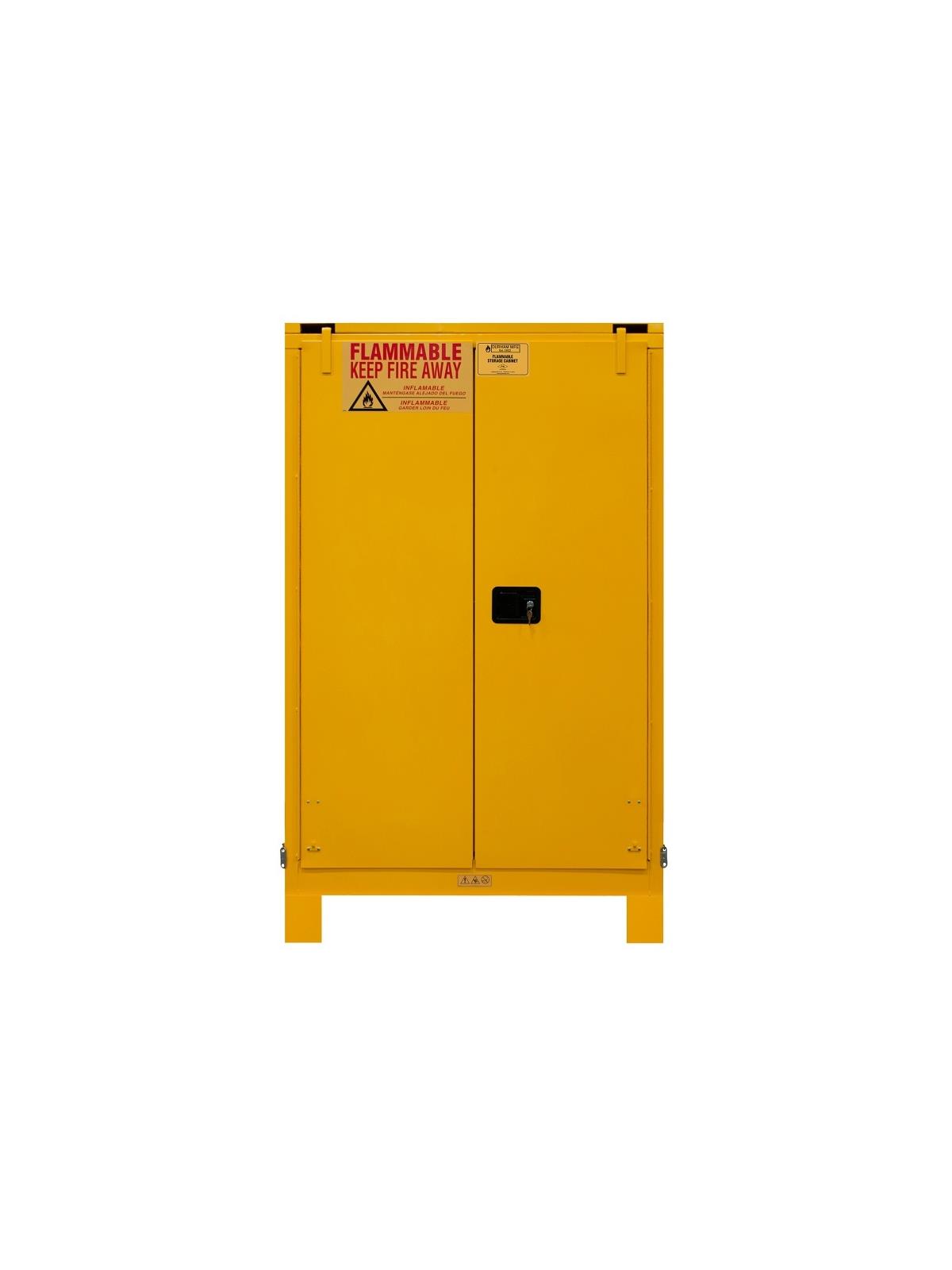 Flammable Storage Cabinets are required by OSHA and UFC in commercial and industrial facilities where flammable liquids are used and stored. Cabinets feature recessed lockable paddle latch and 3 point locking systems which greatly improves security. Bunged air vents on each side of the cabinet allows for greater ventilation. Constructed of all welded Heavy Duty Steel.