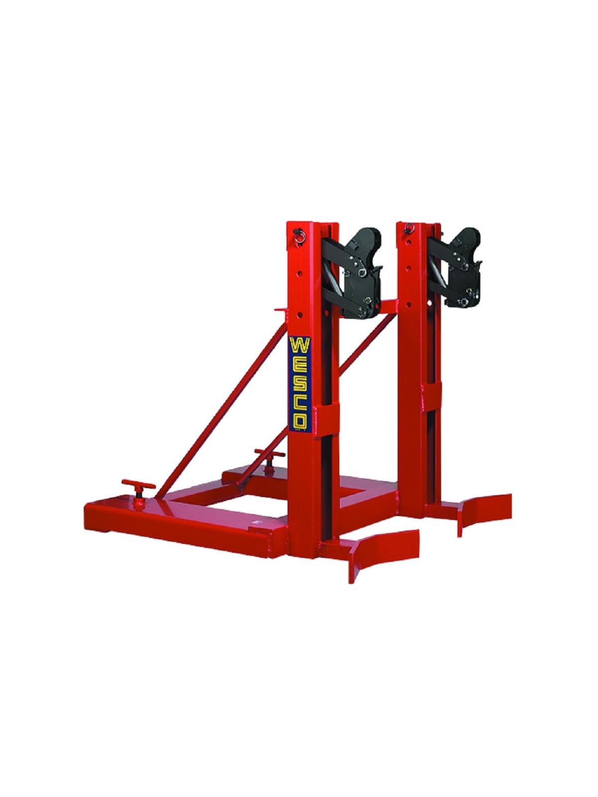 Superior gripping action holds drum tight even over rough terrain. Handles drums up to 1000 lbs. per grip. Can be used with open or closed head drums. Allows lifting and placing drums in tight spots. Lifts drums from the top of center to minimize the risk of damage. Mounts easily on forks -- just hand tighten lock screws and no tools required. FOB Shipping Point.
