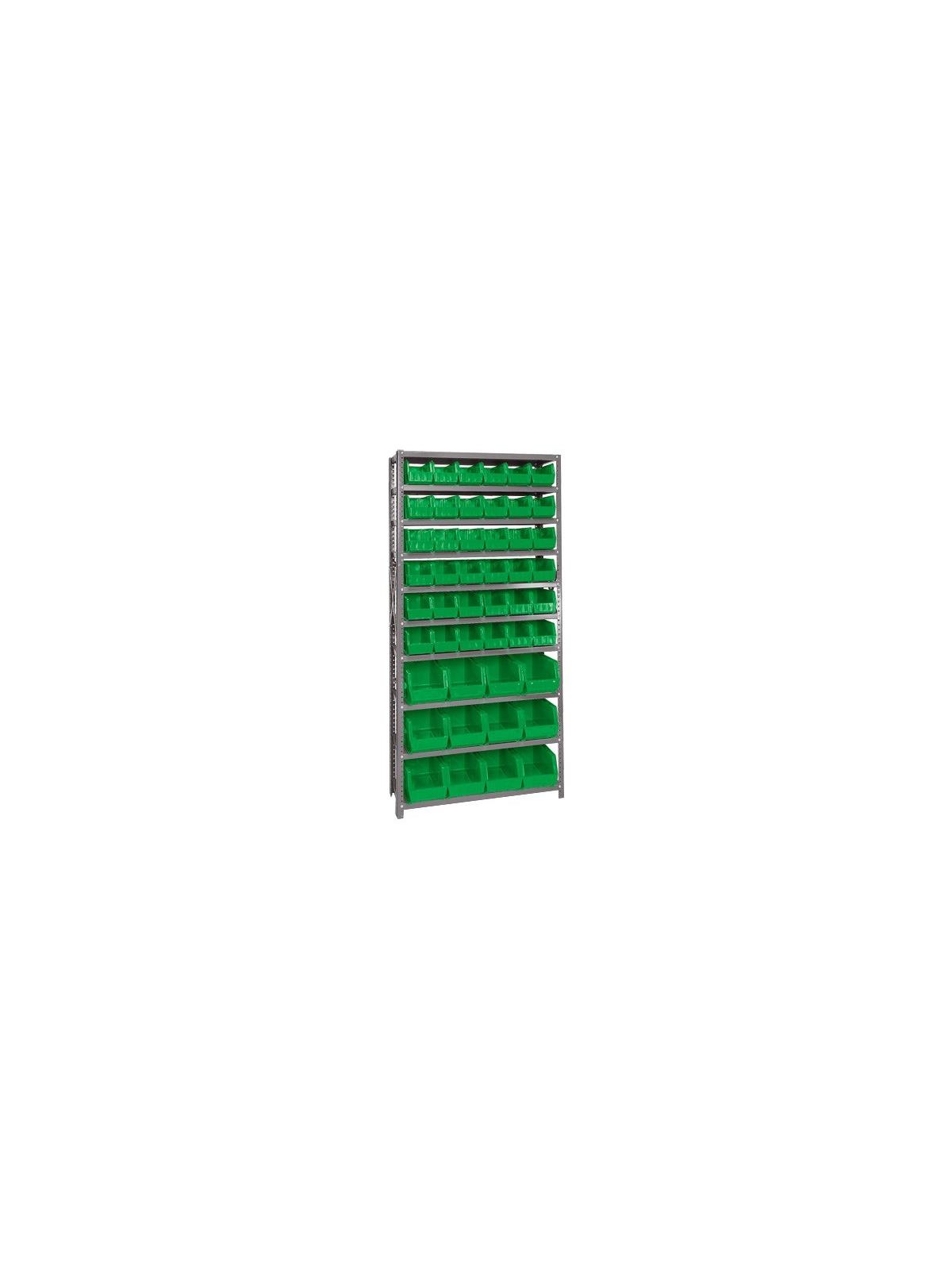 Sold complete with shelving and bins. 350 lb. capacity per shelf. Bins available in Yellow, Blue, Red, Green, Ivory and Black. FOB Shipping Point.