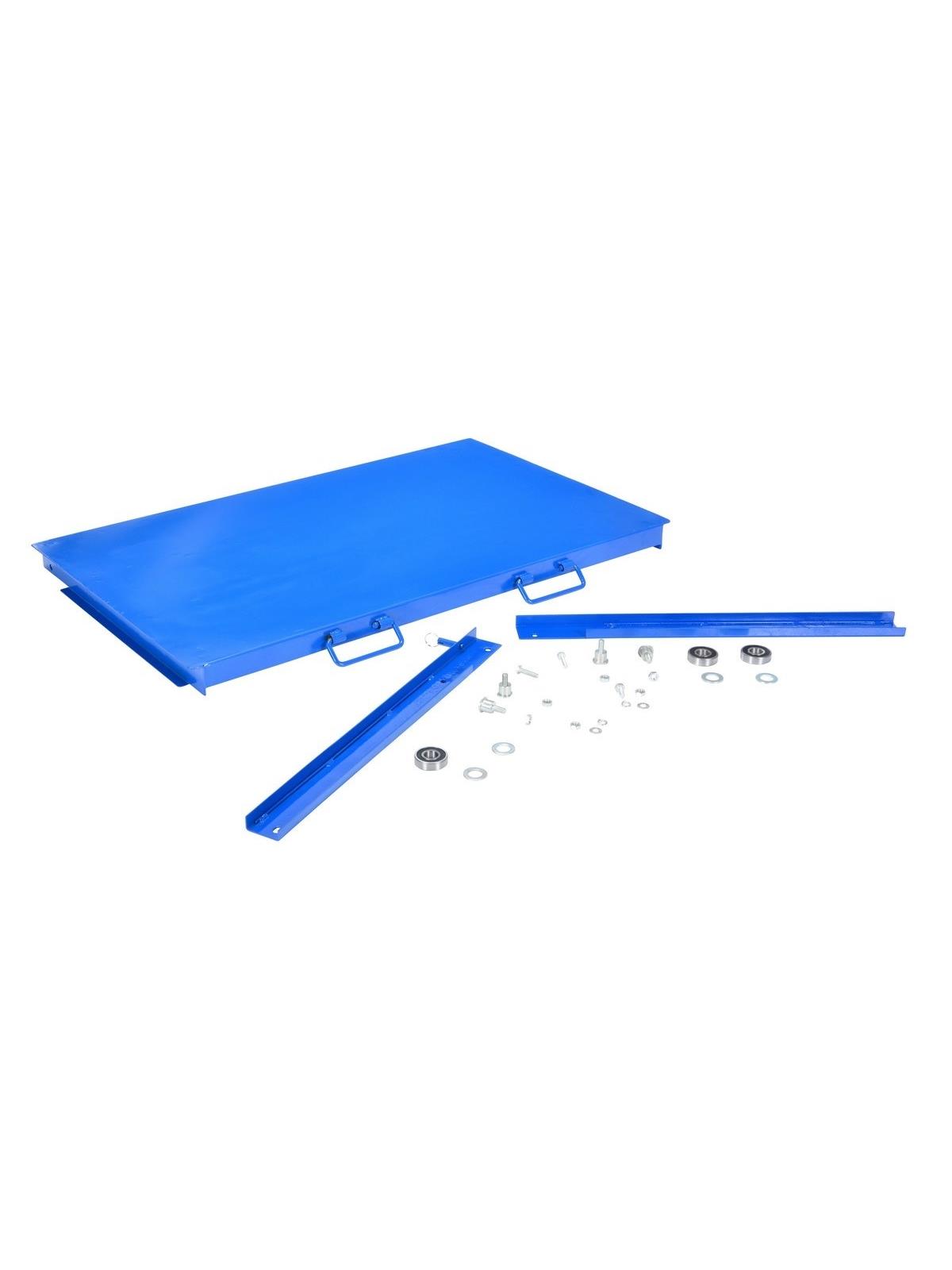 Roll-out shelving racks store heavy dies, fixtures, and machinery. Capacity per shelf is 1,000 pounds evenly distributed with a total uniform capacity of 3,000 pounds. Shelves roll out for convenient loading and retrieving. Can be easily loaded and unloaded with a crane, overhead hoist, forklift, or stacker. Individual shelf heights are adjustable on 2-3/8" centers. Features 10 gauge steel shelves that can extend 20", one (1) at a time, and be locked in the extended position for maximum safety. Top shelf is fixed, non-adjustable. Add on units are available. All steel construction with baked-in powder-coated toughness. Ships unassembled. Three (3) shelves per side of the HVRSOR-120. FOB Shipping Point.