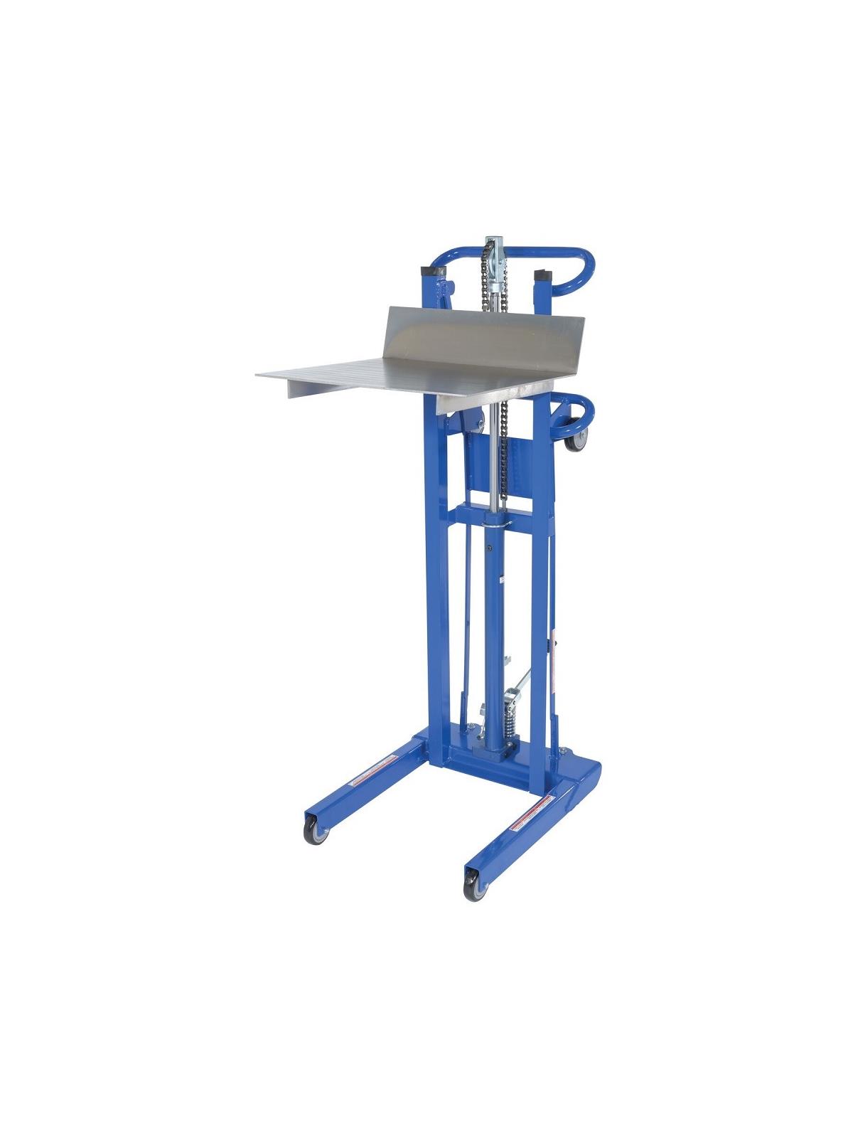 Upper wheels standard for loading into trucks. Safe, easy one person handling of loads up to 1000 lbs. Rugged steel construction for years of dependable service. Precision built hydraulic system is activated by easy action foot lever. FOB Shipping Point.
