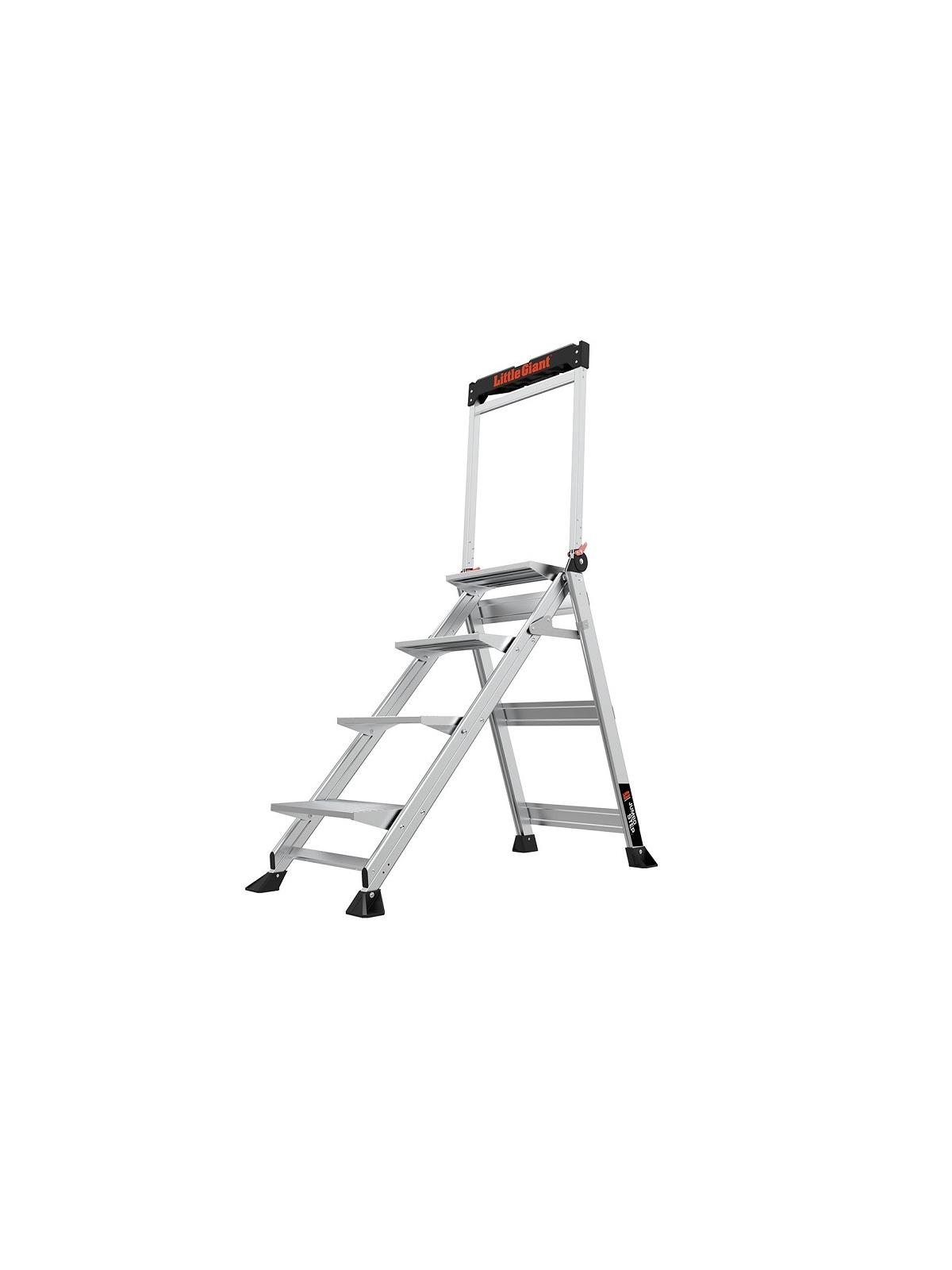 The Little Giant® Jumbo Step Safety Stepladder is the ultimate combination of lightweight, stability and strength. The Jumbo Step's 8-1/2" wide, slip resistant treads and stair-like design provide unmatched comfort and stability. It is ideal for jobs that require both frequent climbing up and down, as well as those that require long periods of standing. This design makes working at heights as comfortable as standing on the ground. The patent pending Jumbo Step operates easily and is simple to store with its slim 4-1/2" storage depth. Its large nonslip footpads provide great traction over almost any surface. Stands up to professional and industrial use and is rated to hold up to 375 lbs. FOB Shipping Point.