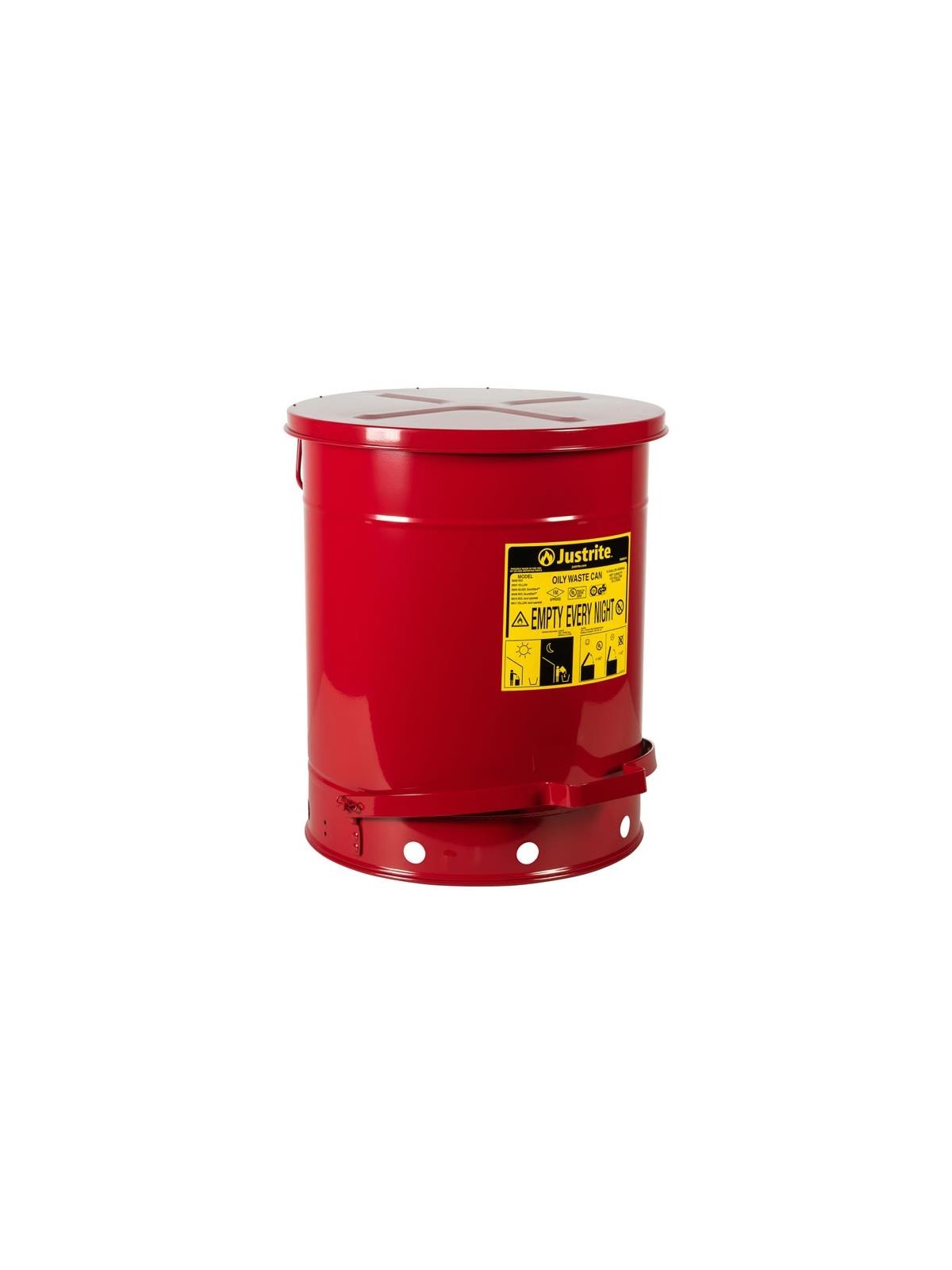 Oily Waste Cans are essential wherever solvent soaked rags and wipes are used. Durable galvanized steel body with carrying handle has a self-closing cover that stays closed when not in use to isolate contents from fire sources and limits oxygen to prevent spontaneous combustion. Raised, flow-through base encourages circulation of air to disperse heat and moisture. Silver color features SoundGard quiet-closing lid to lessen disruptive noise and provide a more comfortable working environment. OSHA compliant, FM approved. UL Listed (except for 2 gallon.) FOB Shipping Point.