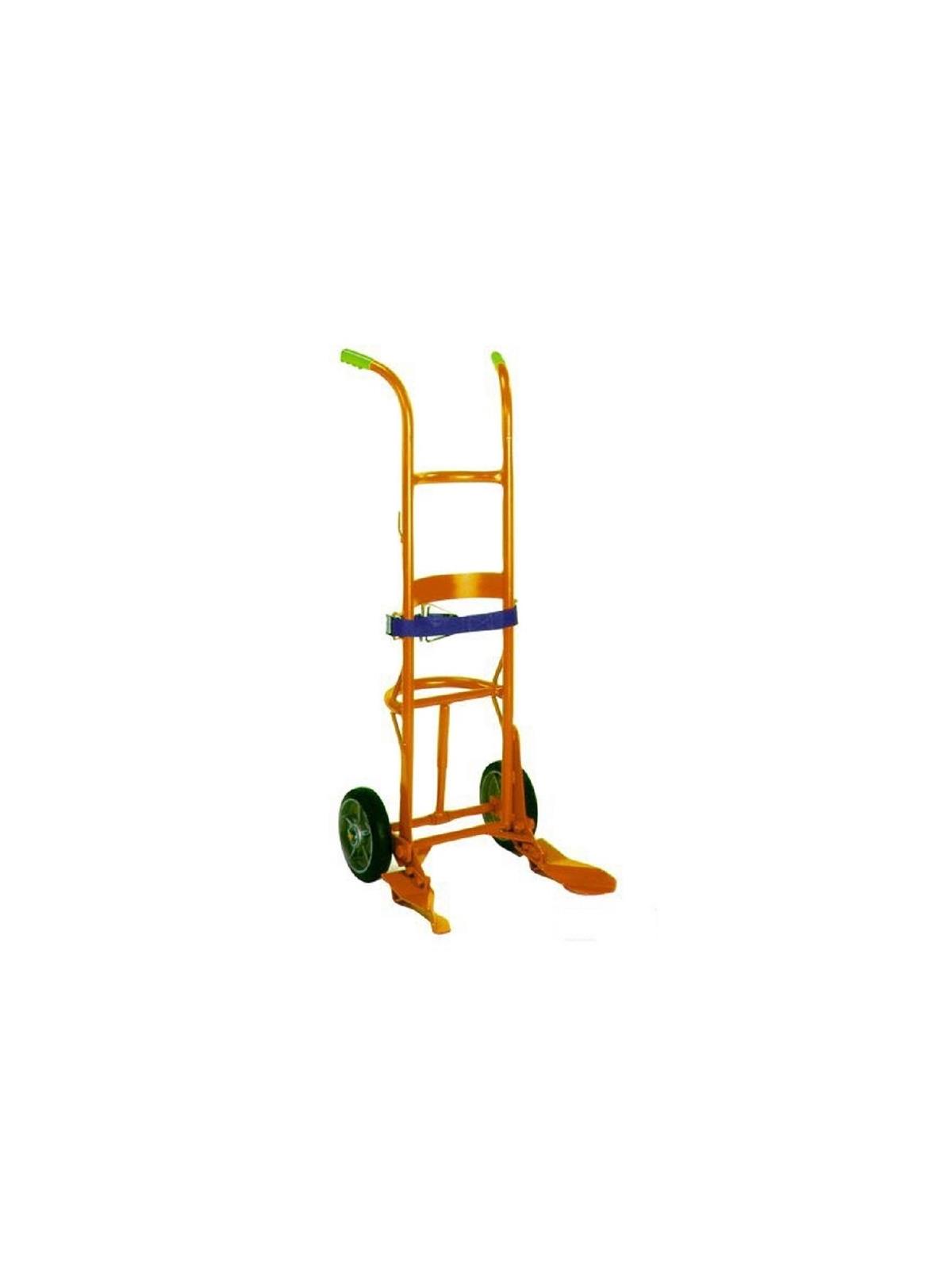 Recommended primarily for handling of 85 gallon overpacks. Long belt allows truck to handle all poly drums. Replaceable "feet" and belt. Wide "feet" and belt eliminate the risk of drums being punctured by nose prongs and chime hooks. Floating axle reduces effort required to break over and balance the load. 23.5"D. Patented design.