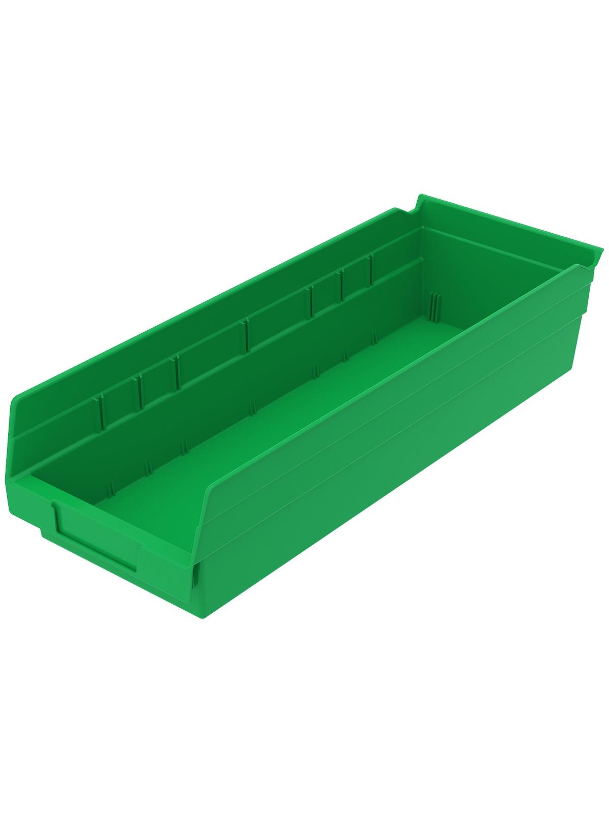 Outlasts corrugated bins - pays for themselves in reduced replacement costs. One-piece construction is waterproof and unaffected by grease or oil. Works with 12", 18" and 24" deep shelving, or vertical storage and retrieval units. Labels available. Available in 22 sizes and five colors - Red, Yellow, Blue, Green, or Semi-Clear. FOB Shipping Point.