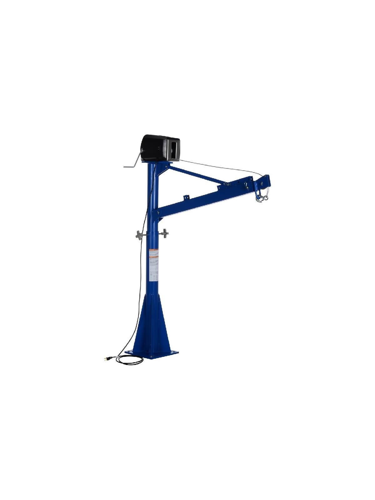 B) The economical answer to your material handling problems. Offers light duty, intermittent use. Up to 1,500 lbs. uniform capacity at 27-13/16" boom extension. 360° locking manual rotation, 25' of 7/32" cable with hook on AC units, 46' of 3/16" cable on DC units.