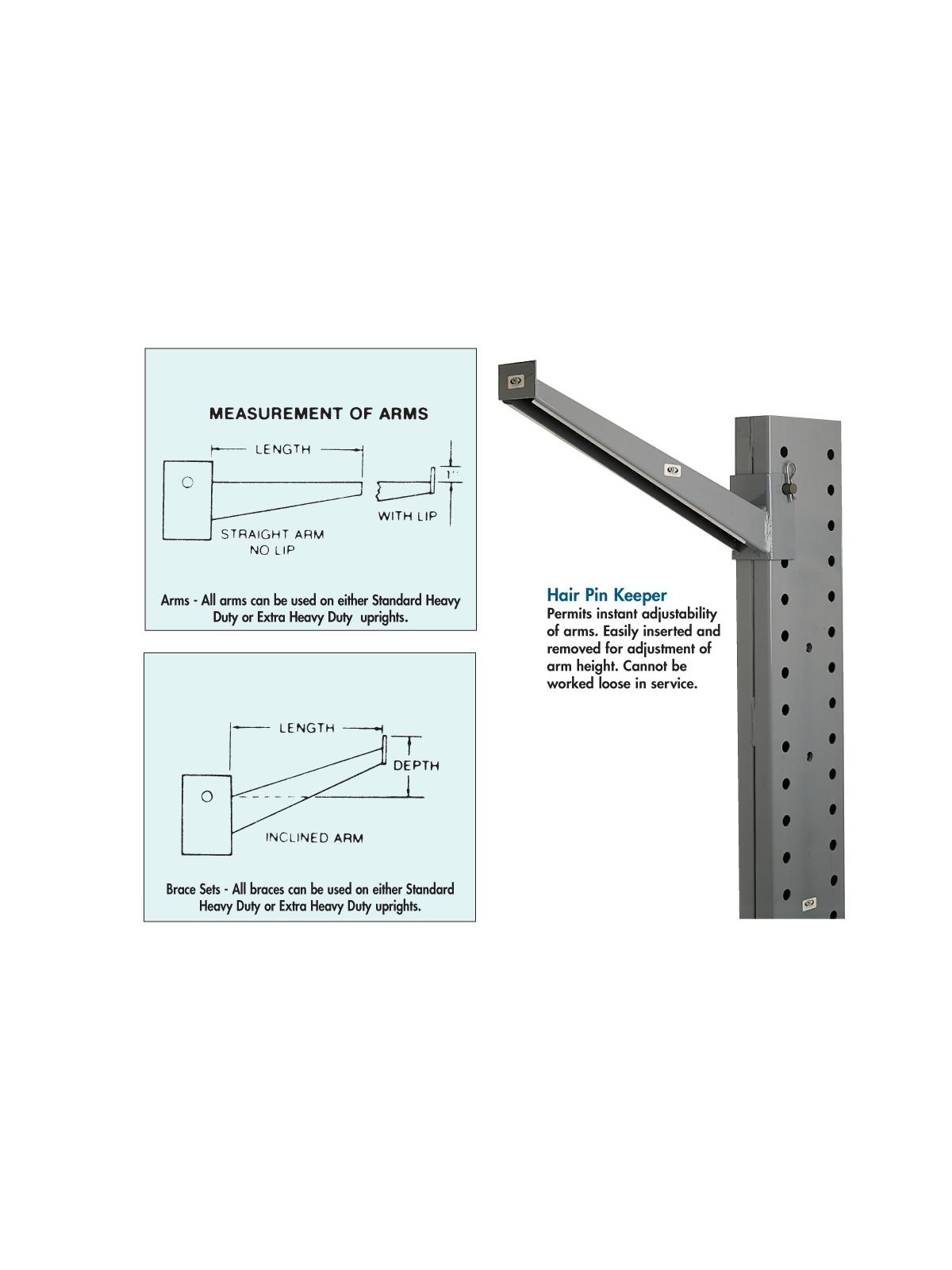 Arms are adjustable 3" up and down the full length of the upright. Uprights are punched on both sides for use as single-sided or double-sided units. Arms and Uprights are ordered separately. All rugged heavy-gauge steel construction for sure, safe support of heavy loads and long life. FOB Shipping Point.