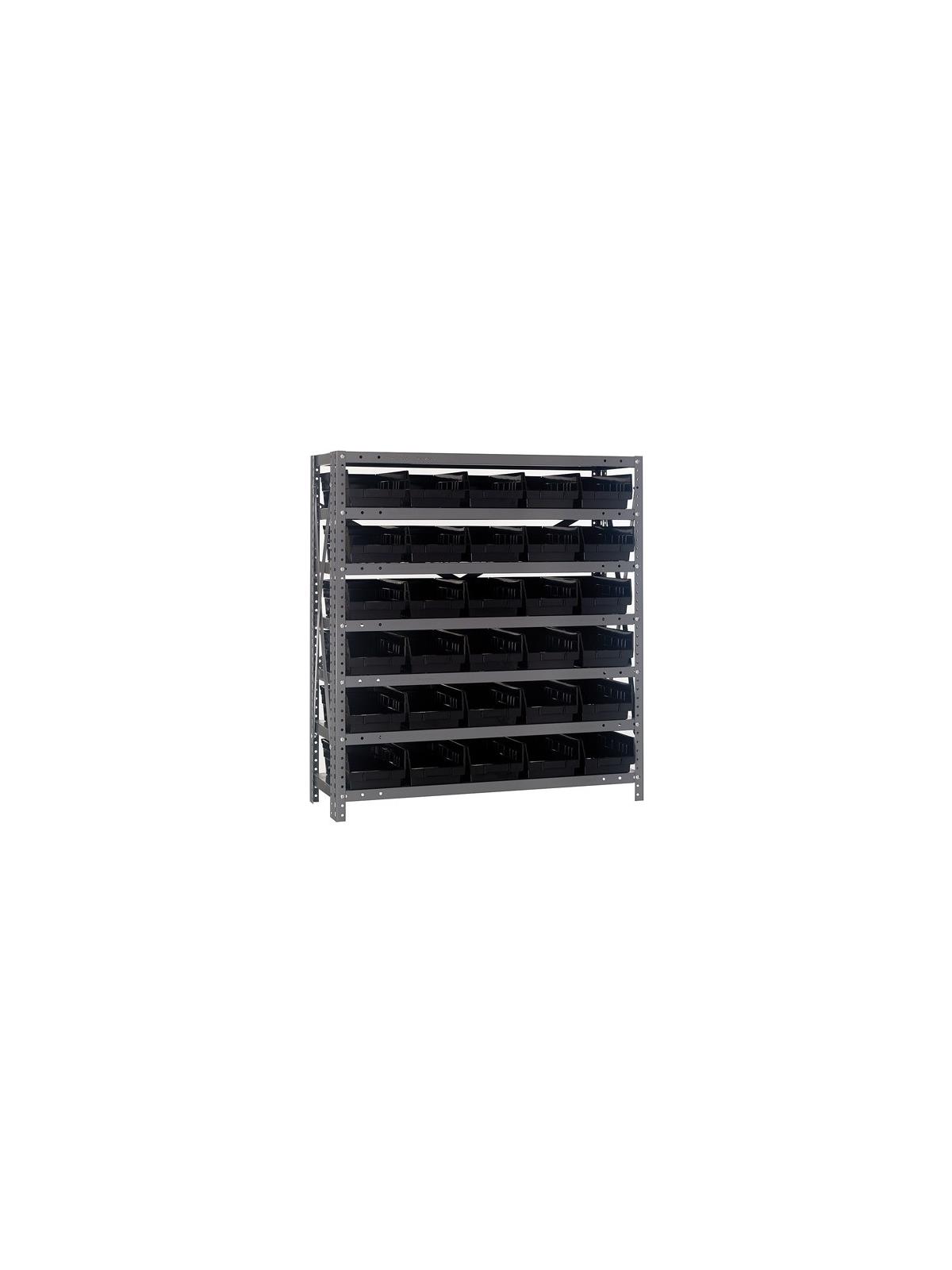 • Economical bin storage system includes durable Plastic Shelf Bins and a 36"W standard shelving.