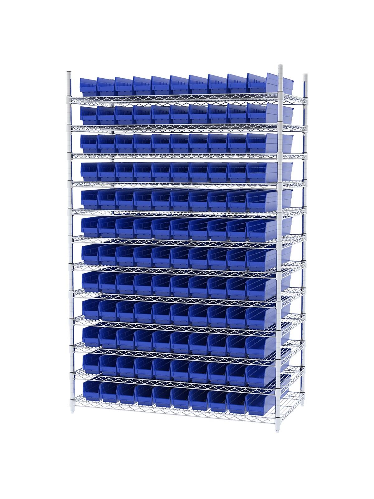 Shelf Bin Wire Systems can be configured for use with 36, 48, 60 or 96 bins providing a versatile system for storage and material handling. Durable and strong polypropylene shelf bins outlast corrugated bins. Bins available in Blue, Red, Yellow, or Semi-Clear. FOB Shipping Point.
